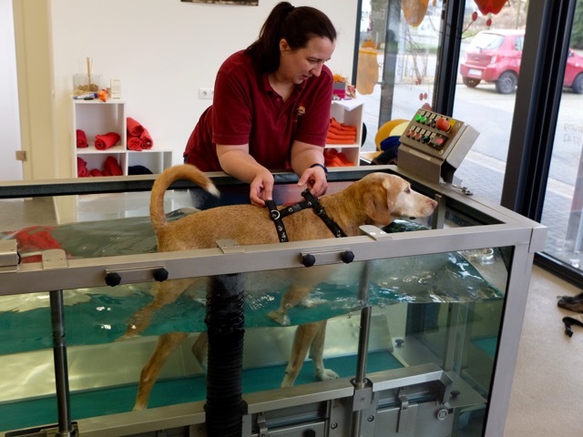 Auch die Hundephysiotherapie ist heute weit fortentwickelt. Die Behandlungen gleichen denen aus der Humanmedizin. Massagen, Kälte- und Wärmeanwendungen oder Ultraschalltherapien gehören dazu. Schwimmen hat ebenfalls einen guten Trainingseffekt. Noch besser bewährt haben sich Unterwasserlaufbänder, die bereits in einigen Tierarztpraxen angeboten werden. Auf dem Laufband bleibt der Hund gezielt und relativ schmerzfrei in Bewegung. Untersuchungen haben gezeigt, dass mit Wassertherapien der Muskelaufbau gefördert und die Beweglichkeit Arthrose-geschädigter Hunde deutlich verbessert werden kann. Angenehmer Nebeneffekt: Aktive Hunde nehmen weniger zu, das entlastet die Gelenke zusätzlich. Unterstützend wirken auch Nahrungsergänzungsmittel mit knorpelaufbauenden oder entzündungshemmenden Eigenschaften.