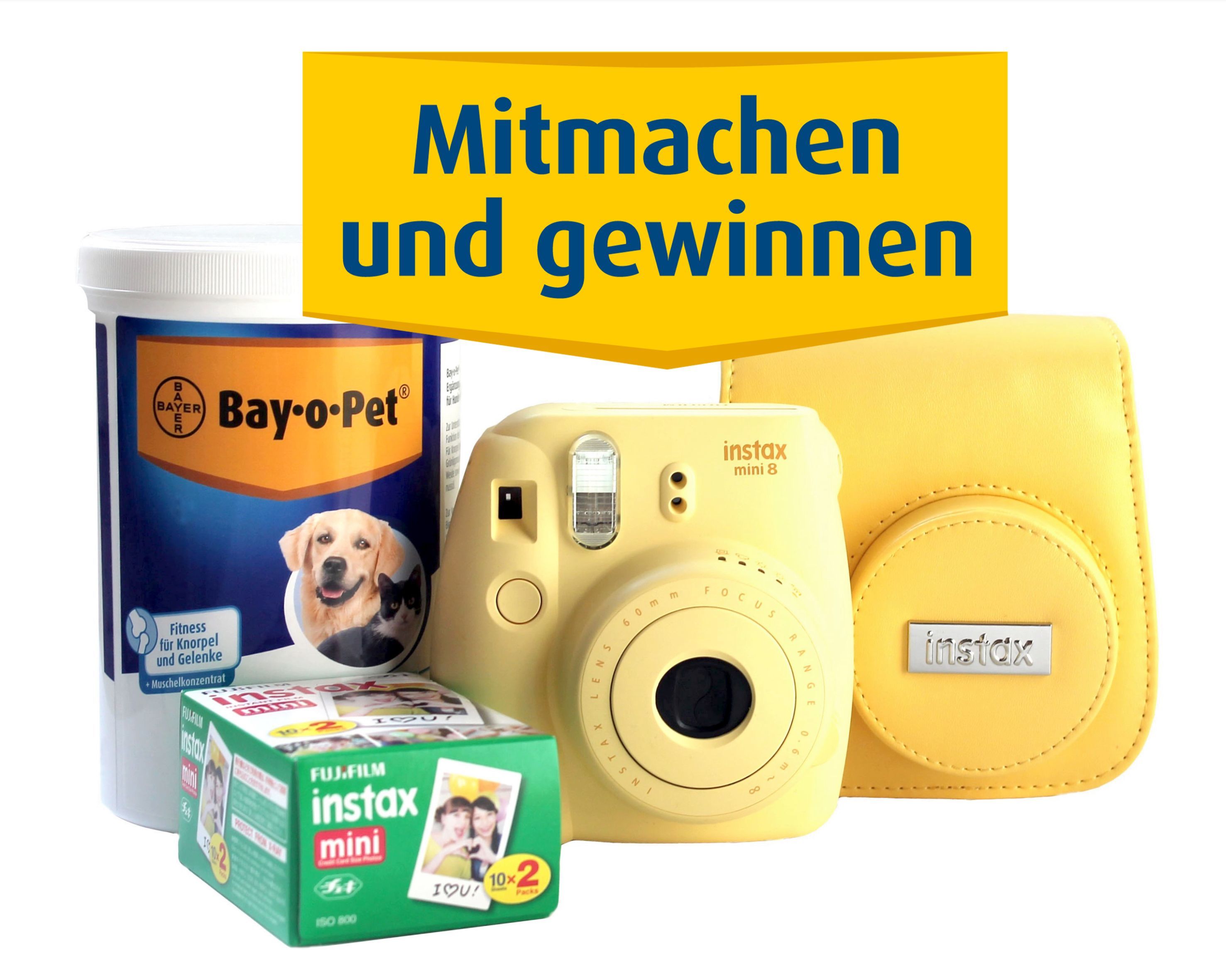 Neben einer trendigen Polaroid-Kamera inklusive Tasche und Fotopapier erhält der Gewinner auch eine Dose des hochwertigen Ergänzungsfuttermittels Megaflex von Bay-o-Pet®. Dieses versorgt die Gelenke von Hunden von innen heraus mit wichtigen Nährstoffen und fördert die natürliche Funktion des Bewegungsapparates. Megaflex wird mit dem Futter zusammen verabreicht und enthält ausschließlich natürliche Inhaltsstoffe, wie etwa die neuseeländische Grünlippmuschel, Brennnesselblätter, Weidenrinde, Teufelskralle, Pflanzenöle und Vitamin E. Damit kann die Bewegungsfreude des eigenen Vierbeiners in allen Altersstufen anhaltend unterstützt werden, so dass dem nächsten gemeinsamen Ausflug nichts im Wege steht.