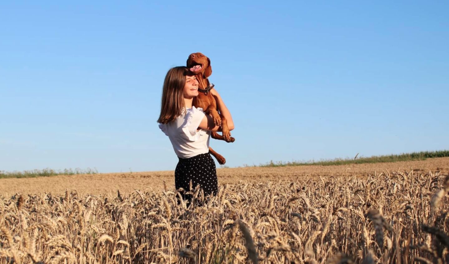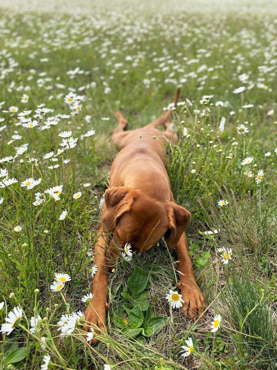 Lola ist wirklich ein kleiner Sonnenschein und bringt uns immer zum Lachen, besonders wenn sie mit Anlauf in eine Wiese springt und alle vier Gliedmaßen von sich streckt."