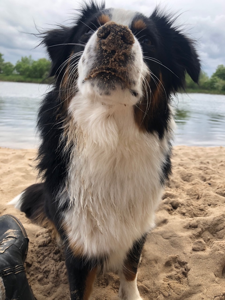 Auf Sheeva kann ich mich stets verlassen und sie ist immer zur Stelle! Sie begleitet mich zuverlässig durch meinen Tag - zu meinem Pferd "Cassy", zum Stand-Up-Paddling, ins Restaurant, über verwilderte Wege oder zu Escape-Games.