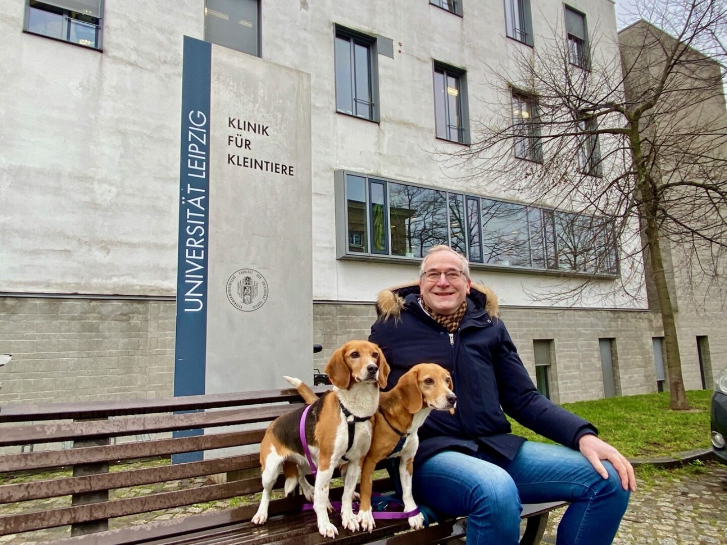 Die beiden Beagle haben die Runde über den Leipziger Campus sehr genossen und zum Abschluss noch ein Leckerlie von Prof. Seeger bekommen. Wer die Möglichkeit hat, sich auf dem Gelände der Veterinärmedizinischen Fakultät einmal umschauen zu können, sollte diese Chance auf jeden Fall wahrnehmen - mit oder ohne Hund.
