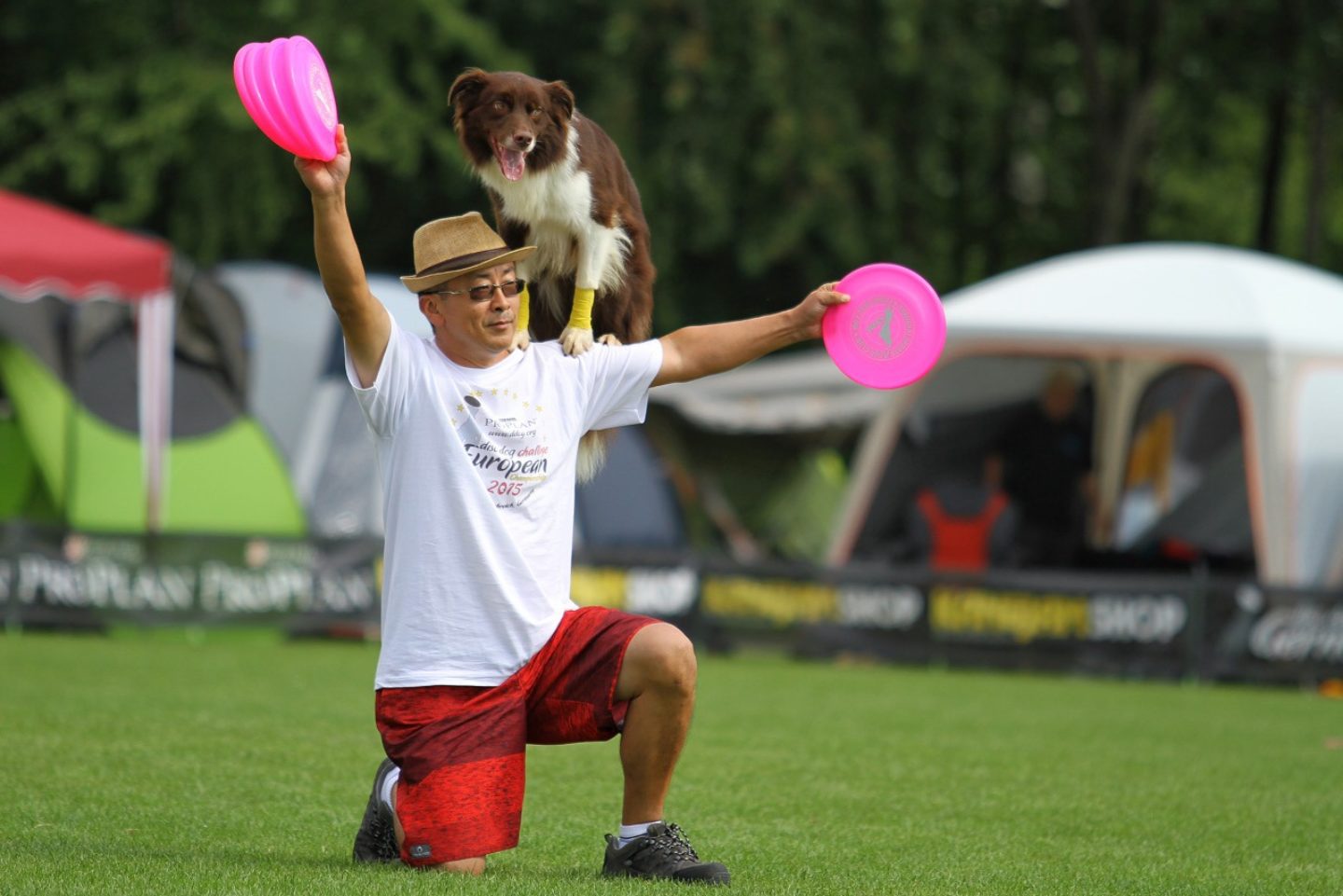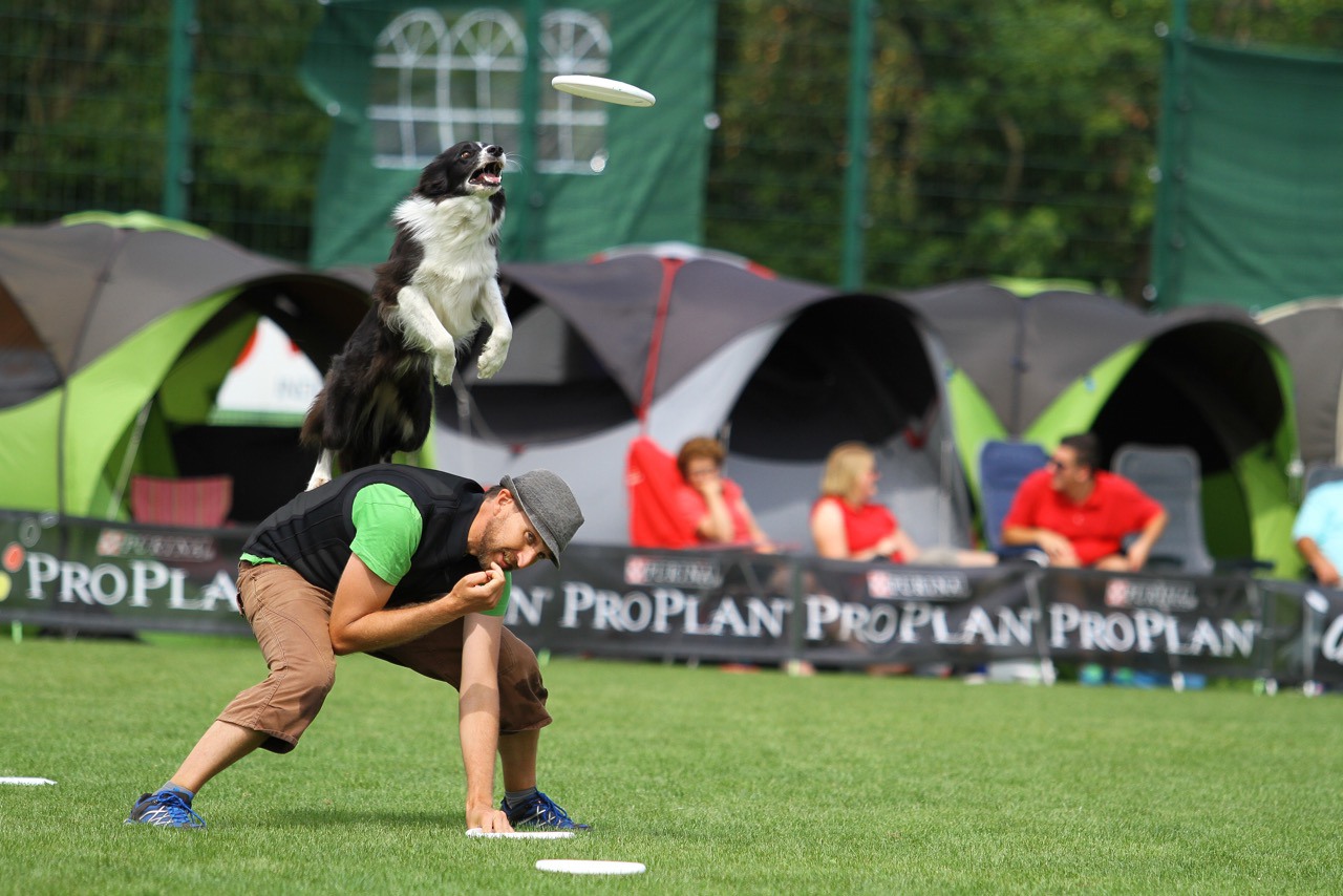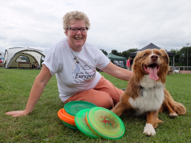 Drei Tage lang dreht sich alles um die runde Scheibe, und die Teams – Menschen wie Hunde - haben sichtlich Spaß daran. Wie die Niederländerin Gesien Broekhuijsen mit Cliff. Die 56-Jährige wirft die Frisbee zu einem langsamen holländischen Schlager, mal weit, dann ganz kurz und schnell, über den Rücken und durch die Beine und der Australian Shepherd schnappt sie – fast - alle. Ausgepowert und glücklich erzählt sie nach ihrer zweiminütigen Freestyle-Darbietung, dass Cliff erst 9 Monate alt ist. Bei einem optimalen Frisbee-Alter von 5 Jahren wird sie mit ihrem Australian Shepherd auf jeden Fall noch viel Spaß haben. Sie sagt, dass sie in erster Linie Freude am Frisbeespiel haben, ihren Hund nicht überfordern und langsam an die Wettkampfatmosphäre gewöhnen will.