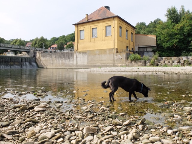 Neulich jedoch in Tübingen ist mir das Herz in die "Hose" gerutscht. Wir waren unterwegs am Neckar, der sich an diesem Tag ganz wunderbar präsentierte. Es war einfach idyllisch. Mein Herrchen hatte sich in den Kopf gesetzt, diesen Spaziergang zu dokumentieren, als "Tübinger Lieblingsrunde" zu veröffentlichen und schoss das ein oder andere Foto. Auf der Jagd nach dem schönsten, buntesten und ausdrucksstärksten Bild wollte er un-be-dingt hinter der Brückenstraße die Böschung runter zum Fluss gehen. Eigentlich kein Problem - ich war in zwei, drei Sekündchen am Wasser. Andreas jedoch, bepackt mit Fotoapparat in der rechten, Handy in der linken Hand und Laptop-Tasche um die Schulter, hatte die Rechnung ohne den Wirt gemacht. Es hatte kurz vorher geregnet, und der Pfad zum Neckar hinunter war dementsprechend rutschig. Nach dem ersten Schritt bereits verlor mein Herrchen das Gleichgewicht, rannte wie eine Vogelscheuche die nächsten Meter, verlor dann völlig die Kontrolle und fiel mit lautem Krachen aufs Tübinger Kiesbett.