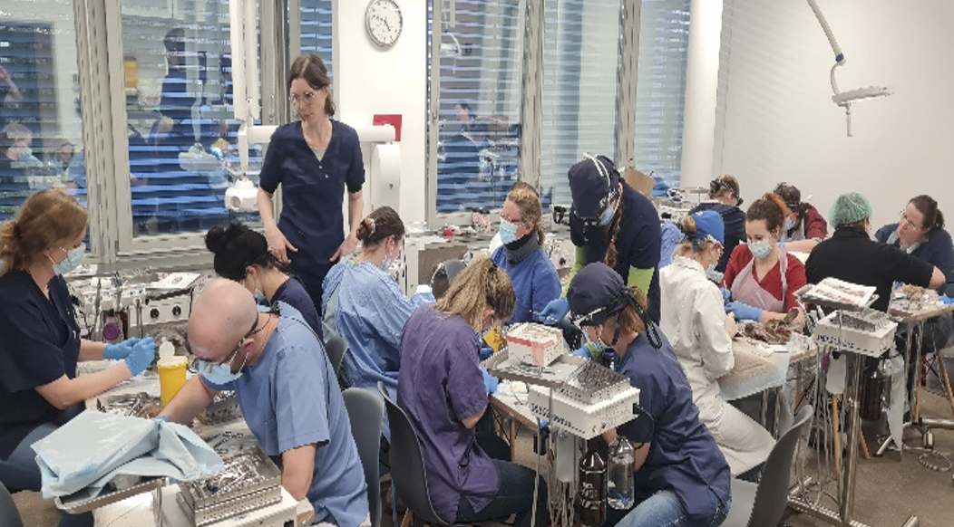 Am Wochenende des 18. und 19. März 2023 fand im Kleintierzentrum Starnberg die Fortbildungsveranstaltung zum Thema „Ohr- und Kieferchirurgie beim Kaninchen und Meerschweinchen“ statt, die vom Leiter des Kleintierzentrums, Dr. Ingo Blanke, Heimtierexpertin Dr. Diana Ruf und Tierzahnärztin Dr. Nina Spyra organisiert wurde. Dank der umfassenden Ausstattung mit allen technischen Geräten durch Visiovet Medizintechnik, war es möglich, dass die auf Kleinsäuger und/oder Zahnheilkunde spezialisierten Tierärzt:innen das erworbene Wissen der Vorträge von Dr. Saskia Köstlinger, Dr. Milena Thöle und Dr. Tina Brezina in praktischen Übungen umsetzten konnten.