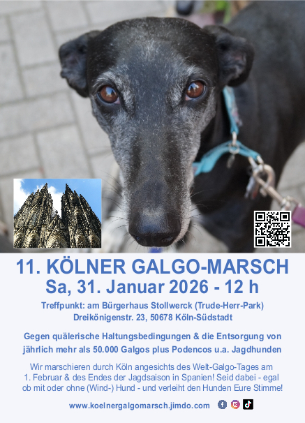 Kölner Galgo-Marsch 2026 - gemeinsam auf die Straße für Spaniens Jagdhunde