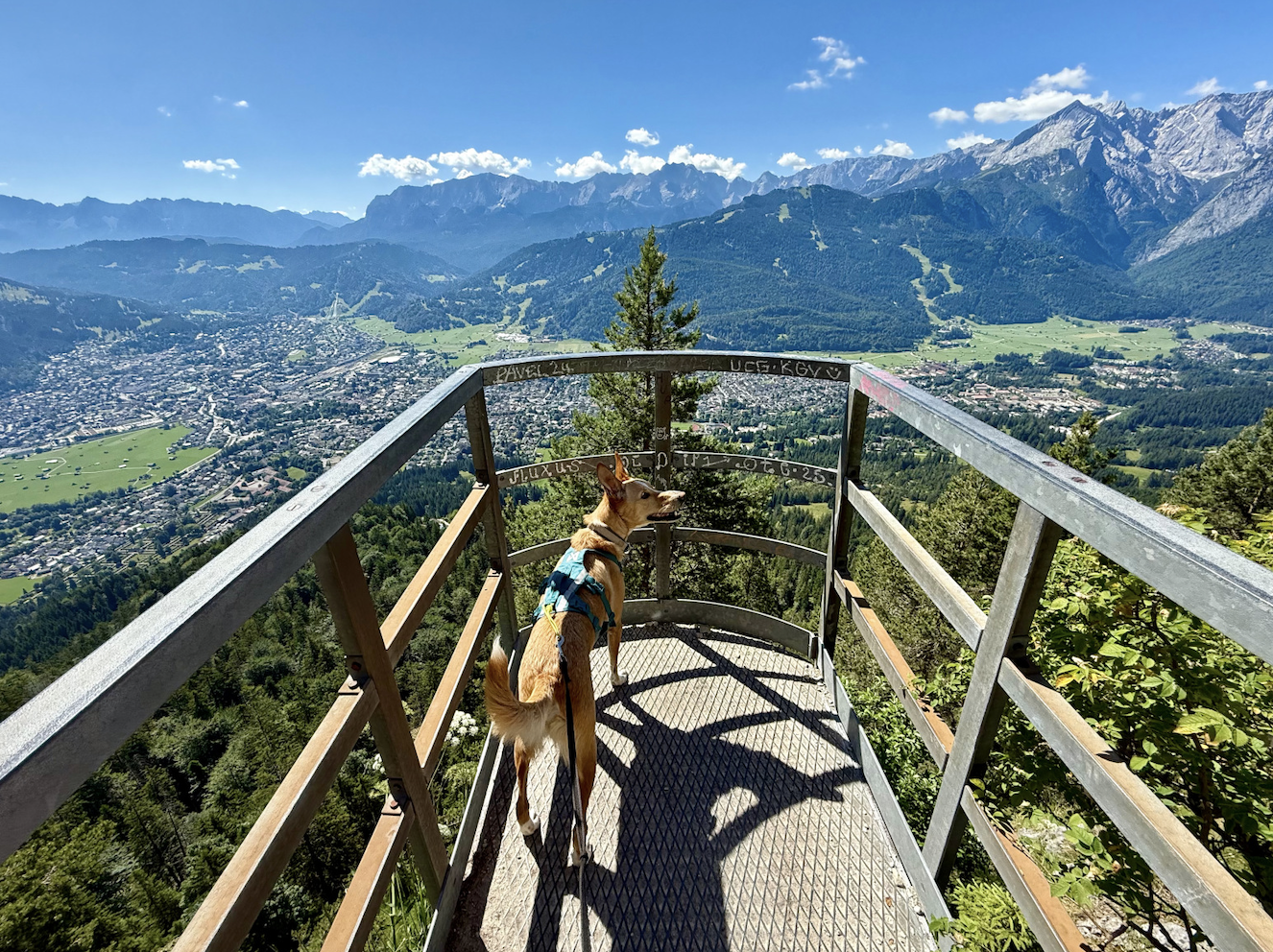 Dass Garmisch-Partenkirchen sich ideal eignet, um Hund und Mensch an längere Bergtouren heranzuführen, zeigt auch das Beispiel von Nadine Regel. Die Journalistin und Bergsportexpertin nutzte die Region zur Vorbereitung auf ihre 50-tägige Alpenüberquerung mit ihrem Hund. Nachzulesen in ihrem Buch „Mein Glück hat vier Pfoten – Wie ich mit meinem Hund über die Alpen wanderte“.