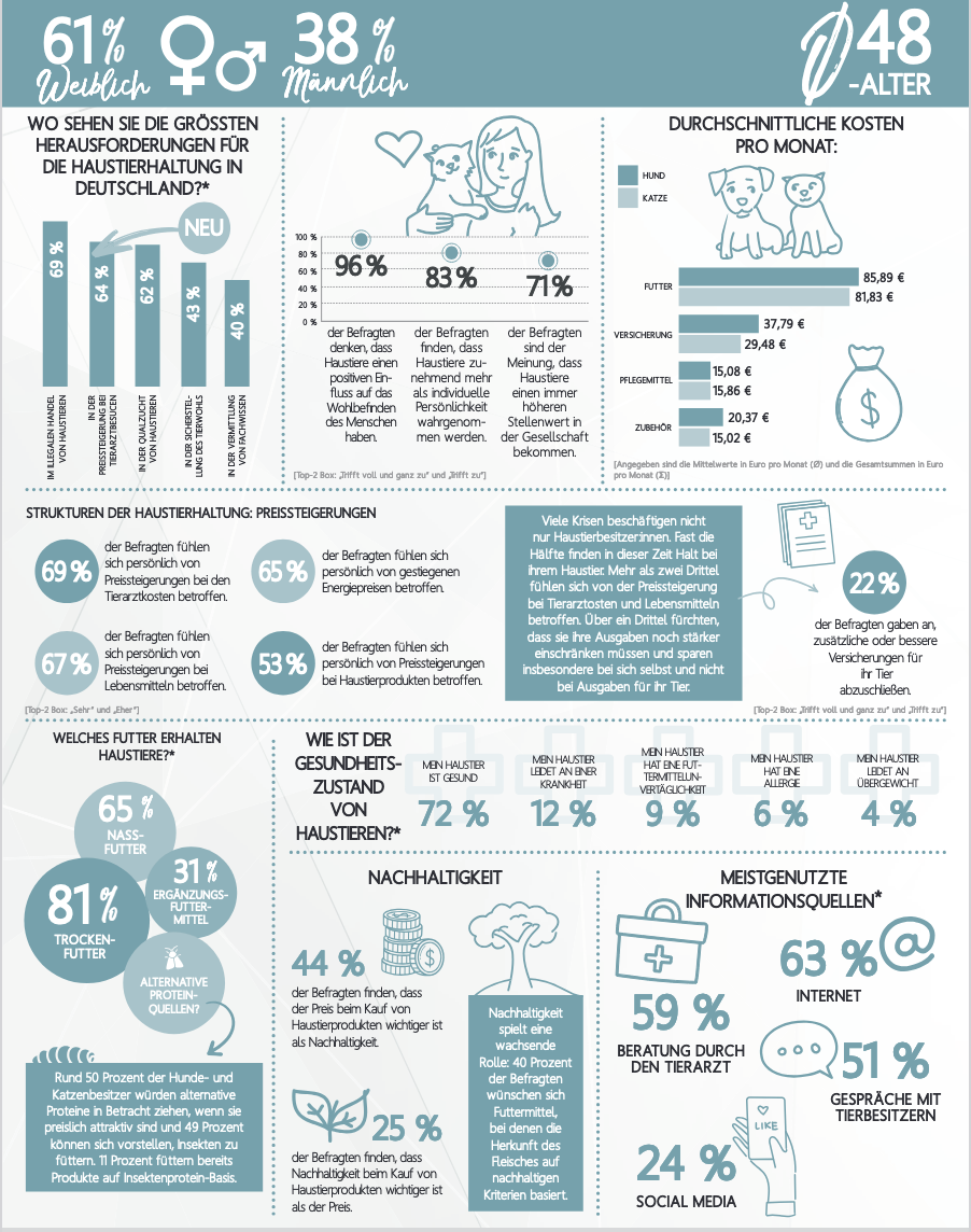 Die aktuelle Haustier-Studie 2024/2025 bestätigt die hohe emotionale Bedeutung von Haustieren für Menschen und belegt erneut den positiven Einfluss auf das Wohlbefinden ihrer Halter:innen. Zugleich zeigt die Studie neue Herausforderungen auf: Tierschutz, nachhaltige Tierhaltung und Preissteigerungen bei Tierarztkosten sowie Futtermitteln erfordern zunehmend Beachtung. Die wachsende Bedeutung von Nachhaltigkeit spiegelt sich im Kaufverhalten wider, wobei 48 Prozent der Haustierhalter:innen bereit sind, für nachhaltige Produkte mehr zu zahlen. Auch alternative Proteinquellen gewinnen an Relevanz, und Eigenmarken erleben ein zunehmendes Vertrauen. Die digitale Informationsbeschaffung über das Internet und eine verstärkte Nutzung von Künstlicher Intelligenz werden wichtiger, während der stationäre Zoofachmarkt weiterhin durch seine Auswahl und Erreichbarkeit überzeugt.