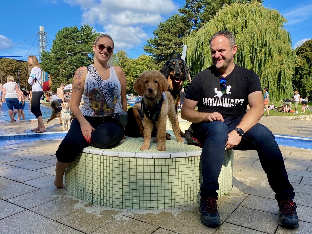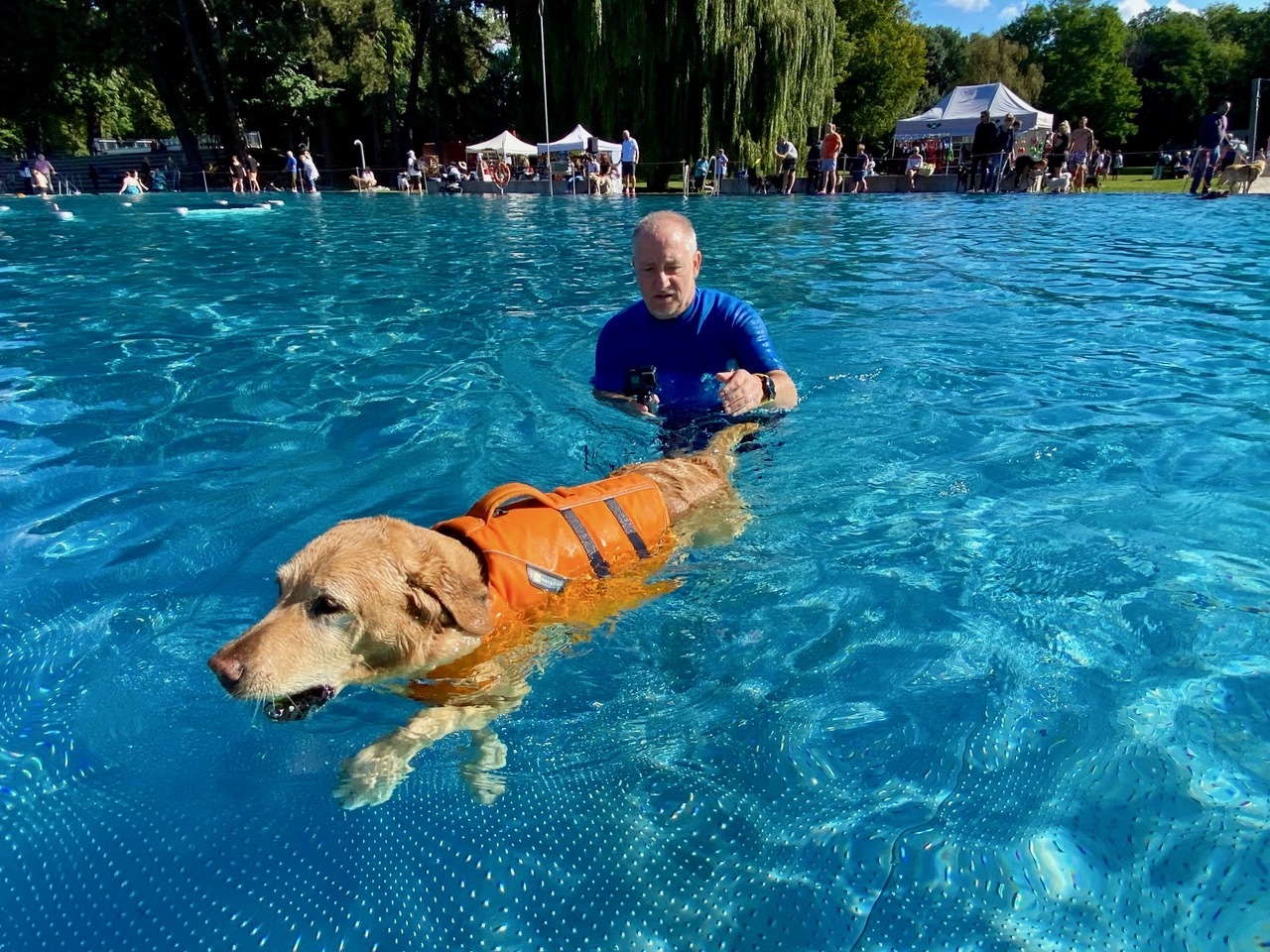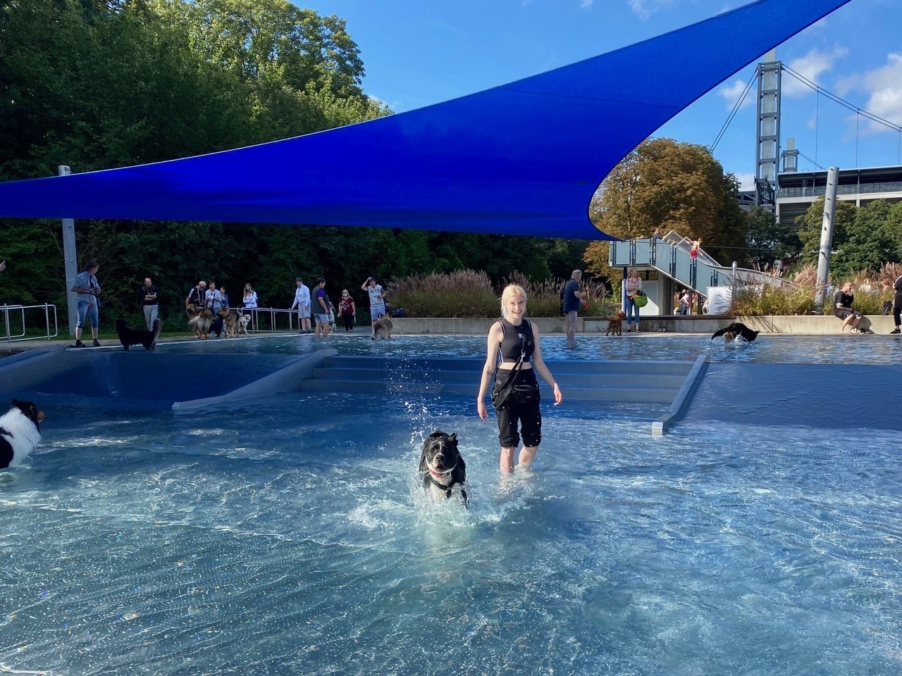 Der Ausflug zum Hundeschwimmtag hat bei uns schon Tradition. Ich hoffe immer noch, dass mein Hund irgendwann einmal eine Schwimmrunde einlegt."