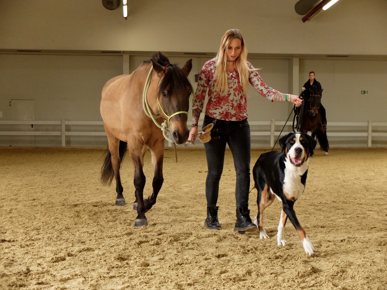 Tiertrainerin Anne Krüger-Degener ist jedes Jahr mit ihrer Show eine der Höhepunkte der Veranstaltung. Dieses Jahr hat sie neben ihren Border Collies, Retrievern und Pferden noch eine Herde Waliser Schwarzhalsziegen mitgebracht. Spitzensport bieten die Hunde, die im irren Tempo über eine Rampe laufen und dann einen Riesensatz ins Wasser machen. Dog-Diving heißt diese Sportart, bei der in Dortmund jeder Hund, der kann und will, teilnehmen konnte. Für jeden Starter gab es ein "Beweisfoto" und eine Futterprobe des Sponsors. Bei einer weiteren Sportart, die in Dortmund präsentiert wurde, muss eine Frisbeescheibe geworfen werden, die die trainierten Hunde dann erlaufen und in der Luft schnappen müssen. Wie das in Perfektion geschieht, zeigte Sabine Wolf, Inhaberin des Hundezentrum Wolff und seit über 15 Jahren als Hundeerzieherin tätig. Beobachten durfte man auf der "Hund & Pferd" außerdem Claudia Neumann, die in Dortmund die Hundeschule "Filmpfoten" leitet. Dort bereitet die Hundetrainerin und gelernte Tierarzthelferin Hunde, aber auch Hühner, Enten, Fasane, Wachteln auf ihre Rollen im TV vor. In ihrer Hundeshow präsentierte sie Filmtiere, Supertalente und sogar Guinness-Weltrekordhunde auf 4 Pfoten.