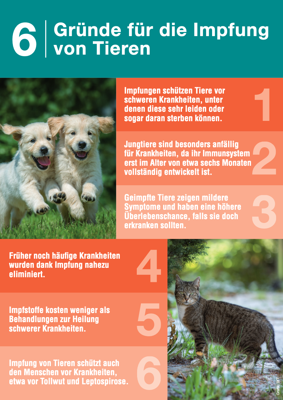 Die Impfung ist wichtiger Bestandteil der Gesundheitsvorsorge bei Klein- und Heimtieren, und zwar lebenslang. Der Welttag der Tierimpfung am 20. April jeden Jahres möchte das Gesundheitsbewusstsein der Tierhalter schärfen und wachhalten.