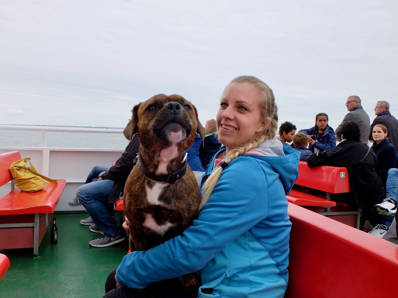 Mit dem Ablegen der Fähre kommt tatsächlich das Urlaubsgefühl auf, das man sich als Städter so sehr wünscht. Die Ruhe wird nur kurz unterbrochen, als der Kapitän sein Signalhorn ertönen lässt, um die entgegenkommende Fähre zu grüßen. Danach herrscht wieder Ruhe, die nicht nur die Zweibeiner zu schätzen wissen, sondern auch die fünf mitreisenden Hunde.
