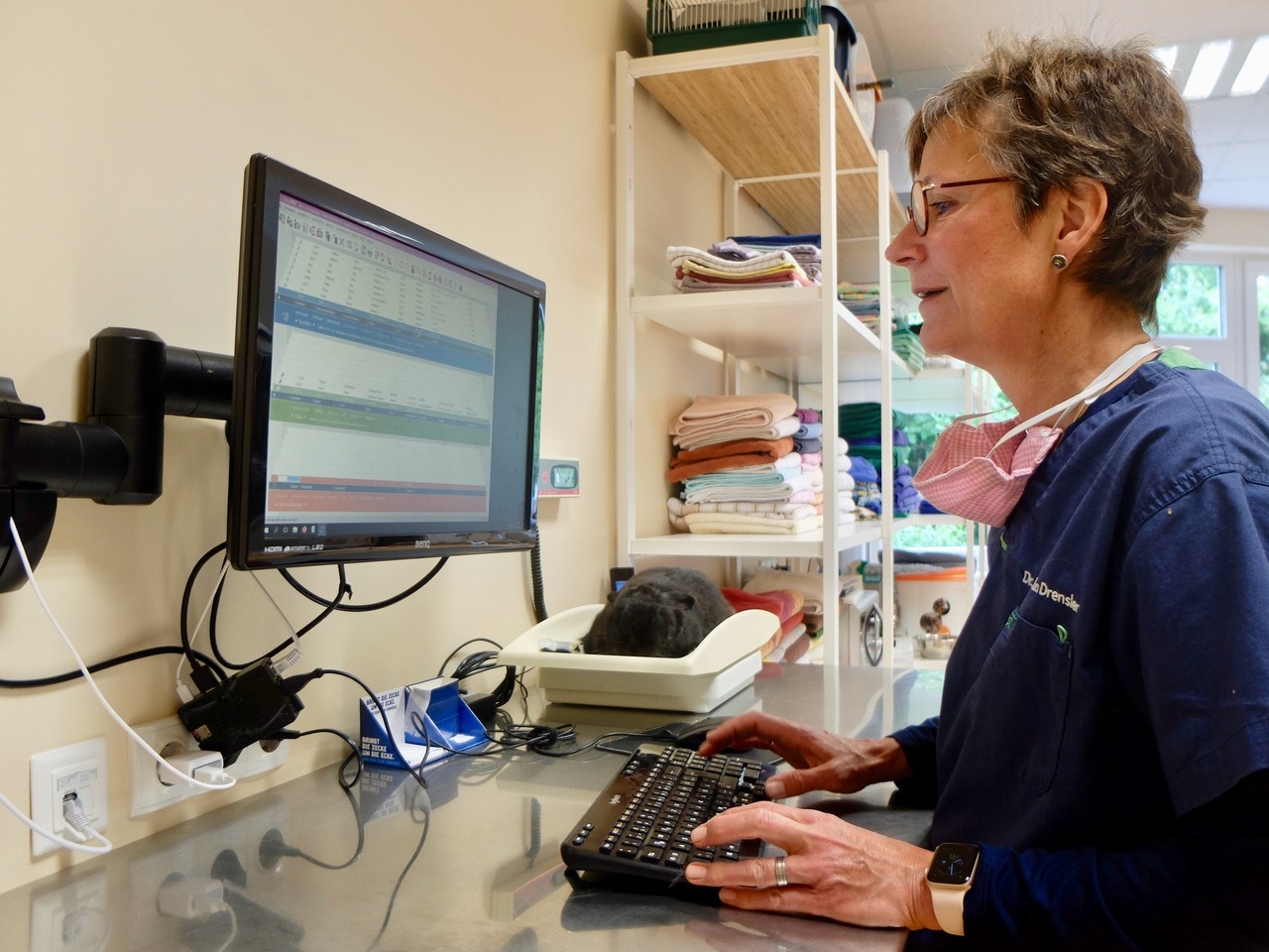 „Die Hälfte aller Praxisfälle sind Katzen“, erklärt Praxismanagerin Cindy Drensler, die seit 2013 die organisatorischen Aufgaben in der Praxis, z.B. Bestellwesen, Rechnungsmanagement, Buchführung, Urlaubsplanung, übernommen hat und zudem häufig am Telefon oder an der Anmeldung zu finden ist. Sie selbst bezeichnet sich als „Frau für alle Fälle“, die sich zudem als Vermittler zwischen Team und Chefin sieht. Neben der Managerin arbeiten in der Elmshorner Praxis noch fünf TierärztInnen, drei Tierärztliche Fachangestellte, ein Lehrling, eine MTR an der Anmeldung und eine Praxishilfe. Es herrscht eine gute Stimmung – man duzt sich. Jeder Einzelne weiß, was er zu tun hat, bzw. wo sein Platz ist. Im OP hat Dr. Angelika Drensler das Sagen - die Abläufe kennen hier alle wie im Schlaf und wissen, worauf die Chefin Wert legt. „Ein perfekter Praxistag ist der, der ohne große Katastrophen zu Ende geht“, erklärt Drensler. Und auch wenn dieser OP-Tag scheinbar perfekt durchgetaktet ist, kommen immer wieder Notfälle dazwischen, die behandelt werden müssen. Dann muss die Mittagspause verschoben werden, beziehungsweise ab und zu ersatzlos gestrichen werden.
