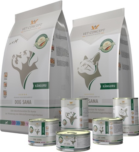 Mit CAT- und DOG SANA KÄNGURU werden die Bedürfnisse von Katzen und Hunden mit Nährstoff-Unverträglichkeiten optimal berücksichtigt. Das Diät-Alleinfuttermittel ist nun als Trocken- und Nassfutter erhältlich. Leicht bekömmliche Wurzelgemüse, Süßkartoffel und Tapioka sowie Erbsen als pflanzliche Komponenten zeichnen sich durch beste Verträglichkeit aus. Bei allergisch bedingten Reaktionen auf einzelne Futterstoffe benötigen Katzen und Hunde eine genau ausbalancierte, hoch verdauliche Nahrung mit moderaten Fett- und Proteinwerten und einen ausgewogenen Gehalt an essenziellen Fettsäuren. Eine fettkontrollierte und hochverdauliche Nahrung mit ausgewählter Zusammensetzung ist zudem bei Katzen und Hunden mit sensiblem Magen-Darm-Trakt zu empfehlen.