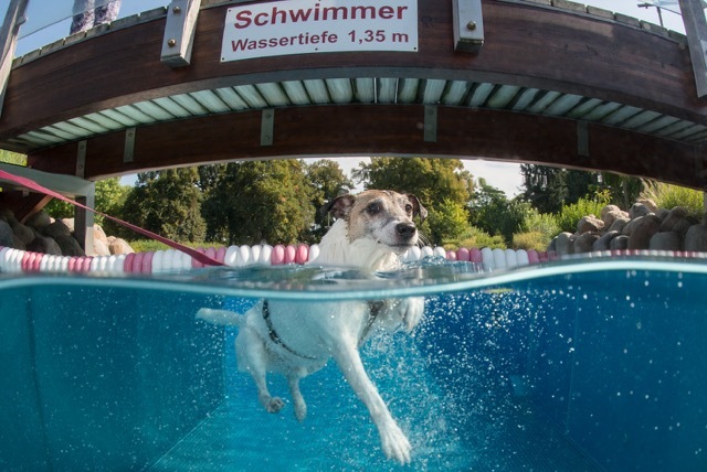 Marc Hillesheim nähert sich dem Thema auf seine Weise und hat im Rahmen eines Hundeschwimmtages im Brühler Freibad sieben Stunden hart im Wasser gearbeitet und über 30 Hunde fotografiert. "Ich war den ganzen Tag bis auf zwei kleine Kaffeepausen im Wasser und war abends völlig erledigt", erklärt der Fotograf. Danach mussten die Bilder bearbeitet und retuschiert werden. Die Besitzer waren von den Ergebnissen begeistert, die er auf seine Homepage Liquidnation präsentierte. Die Preise für dieses besondere Shooting sind human: € 25.- verlangt der Fotograf für das erste Foto des schwimmenden und tauchenden Schützlings, alle weiteren kosten dann nur noch € 10.-.