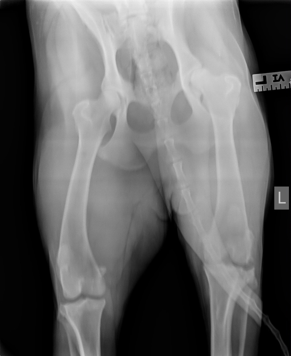 Dies passt gut zum Vorbericht der seit Monaten bestehenden, plötzlich aufgetretenen Lahmheit, die Lea nach Angaben ihres Frauchens mal mehr, mal weniger stark einzuschränken scheint. Ein auffälliges Schwanken im Hinterteil beim Gehen (ein Hinweis auf eine mögliche HD) zeigt Lea schon ihr Leben lang. Neu ist das häufige Hinken seit Monaten, auch wenn sie Schmerzmedikamente bekommt. Zudem schleift Lea seit einigen Tagen zudem mit der linken Hinterpfote über den Boden.