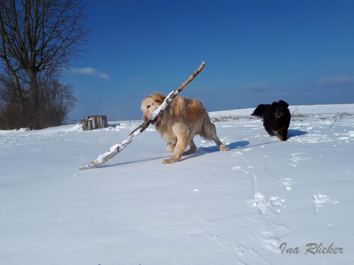 Inzwischen (bisher 10 Sitzungen) wird Lea alle zwei Wochen mit Akupunktur und Cranio- Sacral-Therapie behandelt. Sie kann ihr Frauchen wieder bei ausgedehnten Spaziergängen begleiten und ausgelassen mit ihrer Hundefreundin Anni spielen. Dabei belastet sie auch ihr linkes Hinterbein wieder fast normal und zeigt keine Schmerzen oder neurologischen Befunde wie Schleifen der Pfote. Leas Frauchen und ihr Haustierarzt sind begeistert von den Fortschritten und Leas neuer Lebensfreude, so dass momentan kein Bedarf an einer OP oder weiteren Maßnahmen besteht.