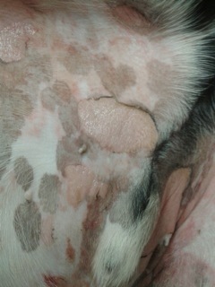 Nemo wurde zunächst symptomatisch mit fiebersenkenden Medikamenten und Schmerzmitteln versorgt. Am nächsten Tag erfolgte eine eingehende Untersuchung und weitere Diagnostik in Narkose. In solchen Fällen, die sich rasant entwickeln und mit Störungen des Allgemeinbefindens einhergehen, ist es ratsam, schnell Proben für die patho-histologische Untersuchung der Haut zu entnehmen, bevor sich die Situation weiter verschlechtert und eingesetzte Medikamente das Ergebnis verfälschen können.