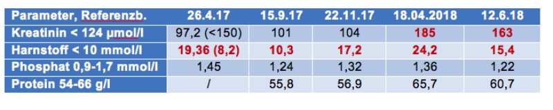 Tab. 1: Entwicklung von Rosis Nierenwerten