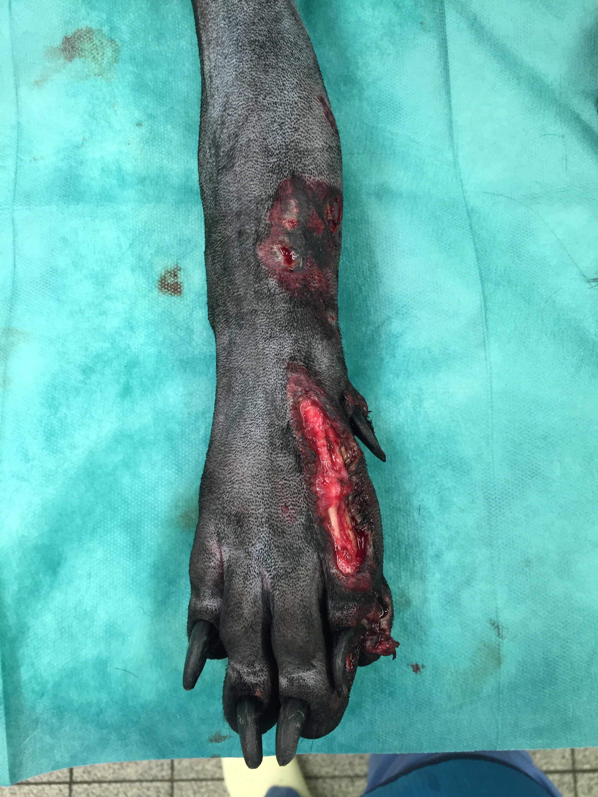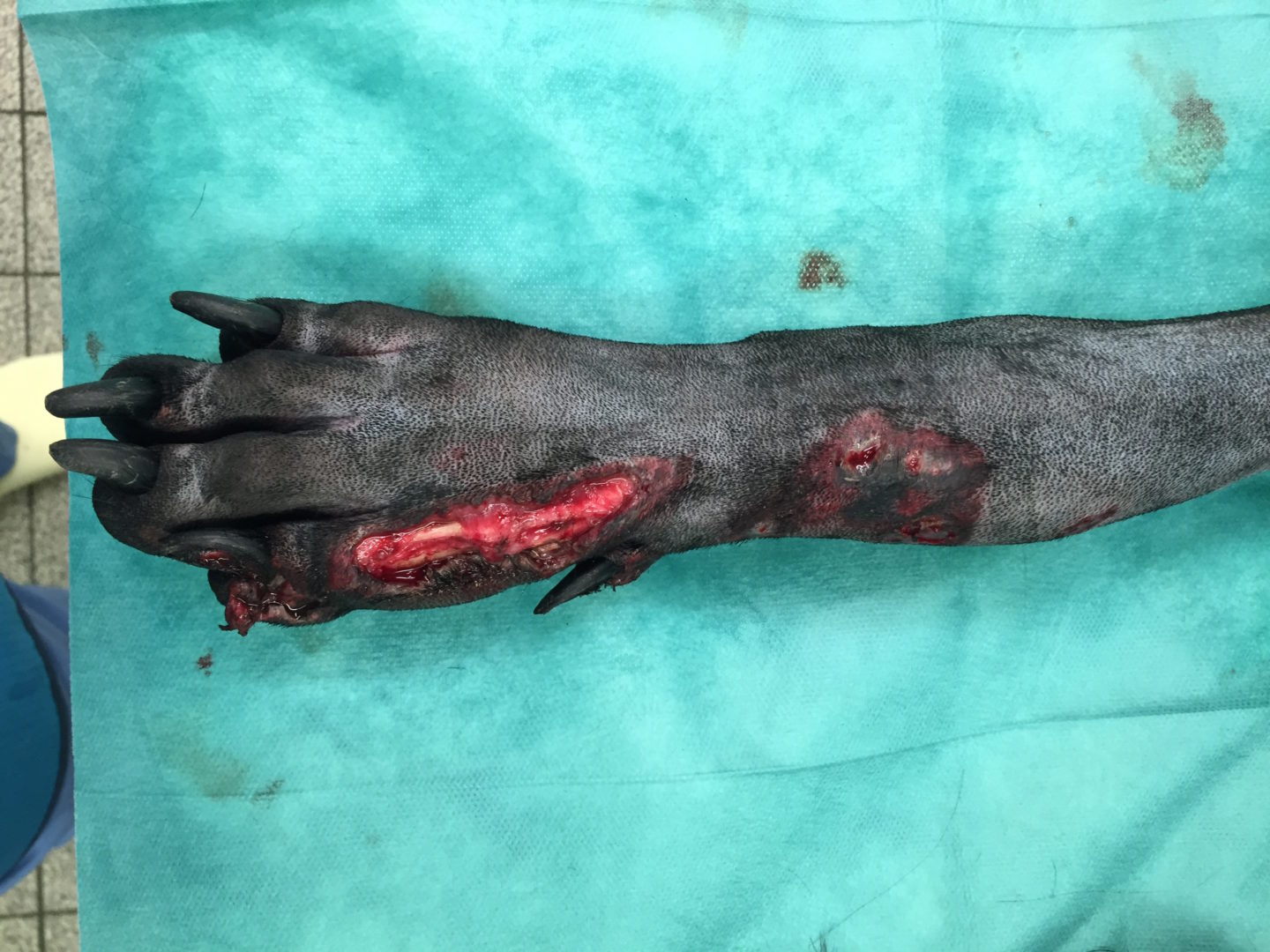 Neben den alltäglichen Verletzungen sehen wir in der Kleintierklinik natürlich auch immer wieder schwere Verletzungen nach Autounfällen, Verbrennungen oder Verletzungen durch Schrot oder Fallen. Hier stehen der Schock und die Begleitverletzungen des Hundes immer im Vordergrund.