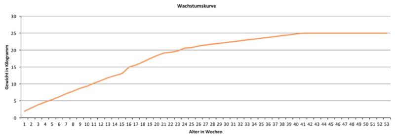 Damit der Besitzer die Gewichtsentwicklung Conors im Blick hat, wurde für Conor eine Wachstumskurve erstellt.