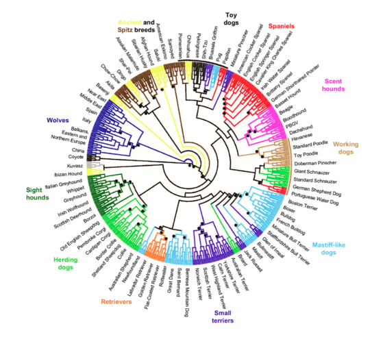 Interessant ist dabei die Tatsache, dass auch unterschiedlichste Rassen sich nur in wenigen genetischen Merkmalen unterscheiden und alle Hunde innerhalb der Art zumindest theoretisch in der Lage sind, sich miteinander zu vermehren. In Evolutions-Maßstäben gemessen, hat die extreme Selektion des Menschen auf ganz spezifische äußere Merkmale dabei in kürzester Zeit so unterschiedliche Rassen wie den Zwergdackel und den Irischen Wolfshund hervorgebracht. Abläufe, welche in der Natur zehn- oder hunderttausende Jahre dauern oder auf Grund der natürlichen Selektion nicht stattfinden würden, sind für uns beim Hund eine Selbstverständlichkeit, die auch von Experten selten hinterfragt wird.