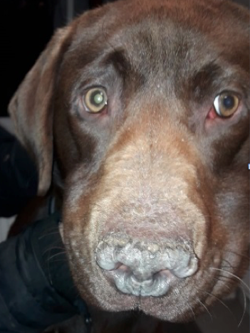 Die krankhafte Veränderung der Haut kann sich zum Beispiel in Form einer Ichthyose (Fischschuppenkrankheit) zeigen. Bei dieser Erkrankung kommt es zu einer Störung der normalen Erneuerung der oberen Hautschichten. Die Folge ist das Auftreten von Schuppen. Je nach Schweregrad der Erkrankung sind Symptome von Schuppenbildung bis hin zu großflächigen, teilweise auch pigmentierten Schuppen (daher der Name der Krankheit) denkbar. Ebenso kann ein vermehrtes oder verlängertes Auftreten von Milchschorf beim Welpen ein Symptom der Erkrankung sein. Auch wenn in vielen Fällen die Symptome rein kosmetisch sind, so leiden manche der betroffenen Tiere unter starkem Juckreiz oder Sekundärinfektionen der Haut und somit unter gesundheitlich relevanten Symptomen einer Ichthyose. Genetische Test sind für Rassen wie den Golden Retriever, den American Bulldog oder auch die Deutsche Dogge verfügbar. Bei allen Rassen wird eine zusätzliche Beteiligung von Umweltfaktoren (Haltung, Stress, Futter, …) für die Ausprägung und Schwere der Symptome als wahrscheinlich angesehen. Laboklin konnte dies im Rahmen einer Studie und ausführlichen Berichten betroffener Hundehalter und Tierärzte bestätigen.