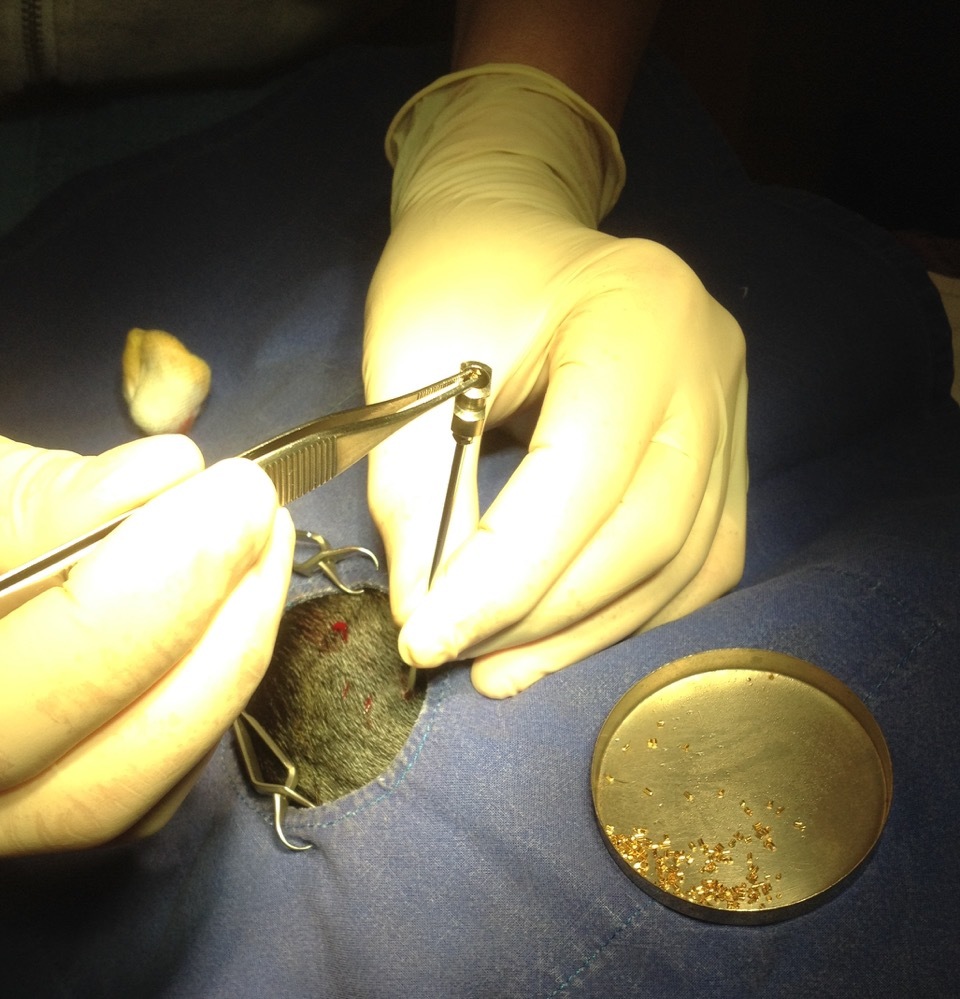 Was wird bei der Goldakupunktur gemacht? Mittels einer Hohlnadel werden kleine Golddrahtstückchen (24 Karat) in definierte Akupunkturpunkte gelegt.