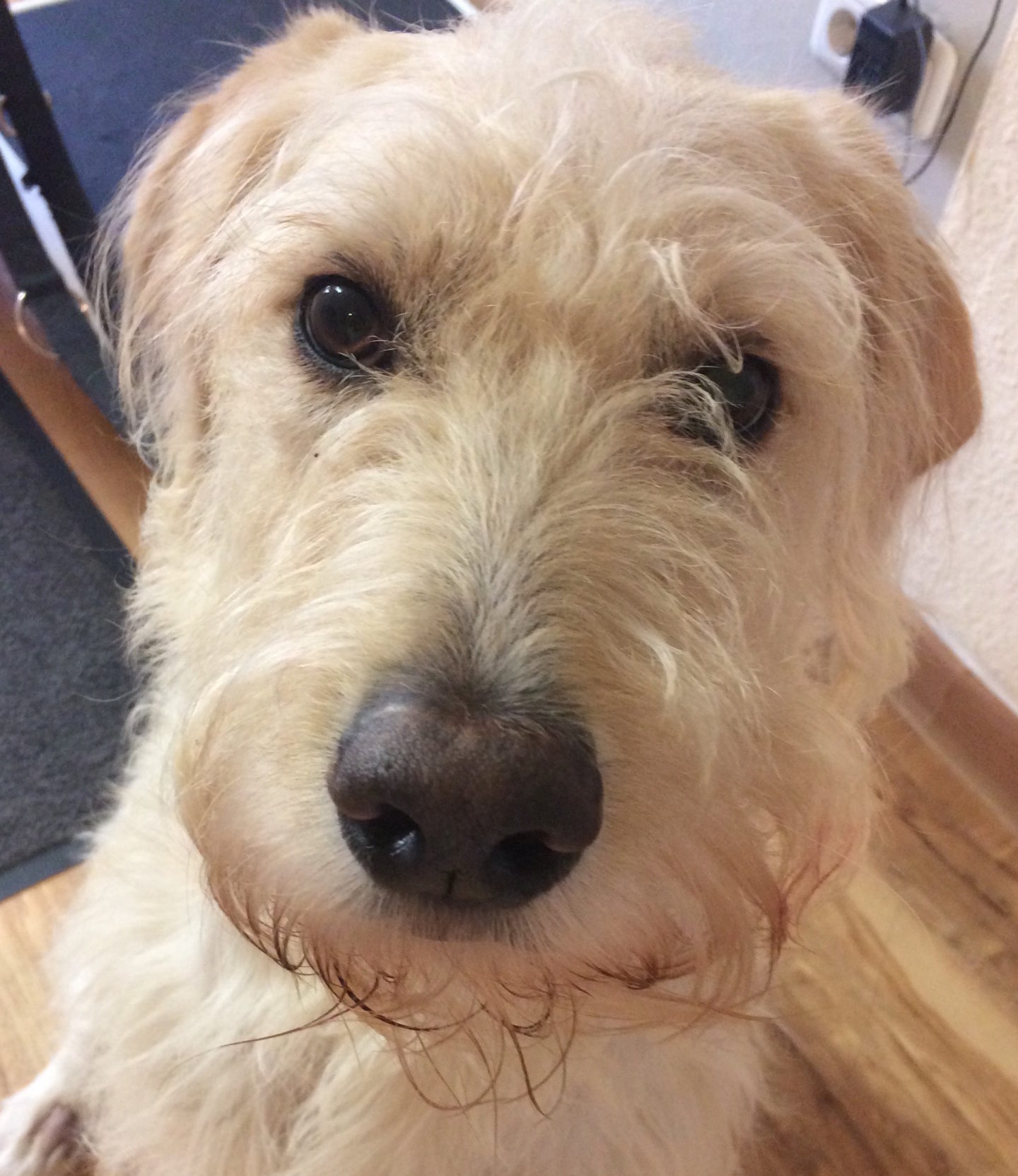 Muffin ist erst eineinhalb Jahre alt. Der quirlige Riesenschnauzer-Mischling läuft seit ein paar Wochen „hinten sehr komisch“. Am Wochenende wollte er nicht aufstehen, hat „verzweifelt“ geguckt und sich dann hoch gequält. Das Schmerzmittel, welches die Haustierärztin verschrieb, hat nicht geholfen. Muffin setzt das linke Hinterbein fast gar nicht auf, legt sich sehr schnell hin und kann nicht in das Auto springen. Die zur Hilfe gerufene Physiotherapeutin rät seinem Frauchen zu einer Untersuchung in der Tierarztpraxis am Gotenring in Köln-Deutz.