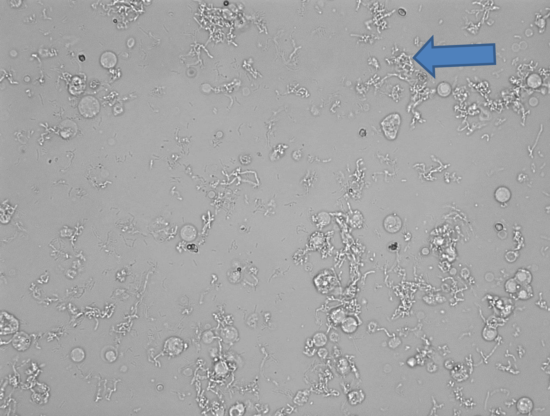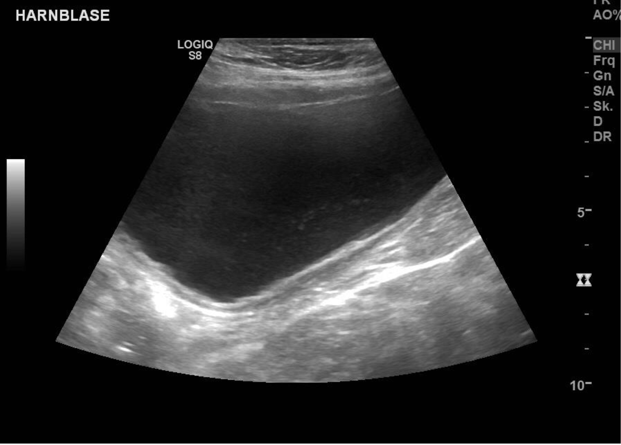 Der Hund kam mit allgemeinen Symptomen wie Unwohlsein/Schwäche, und mit Problemen - verstärktes Trinken und häufiger Harnabsatz, teilweise auch im Haus). In einer unter Ultraschallkontrolle mittels steril entnommener Urinprobe konnten im Sediment bereits mikroskopisch Bakterien nachgewiesen werden. Die Harnblasenwand stellte sich im Ultraschall leicht verdickt (chronisch entzündet) dar.