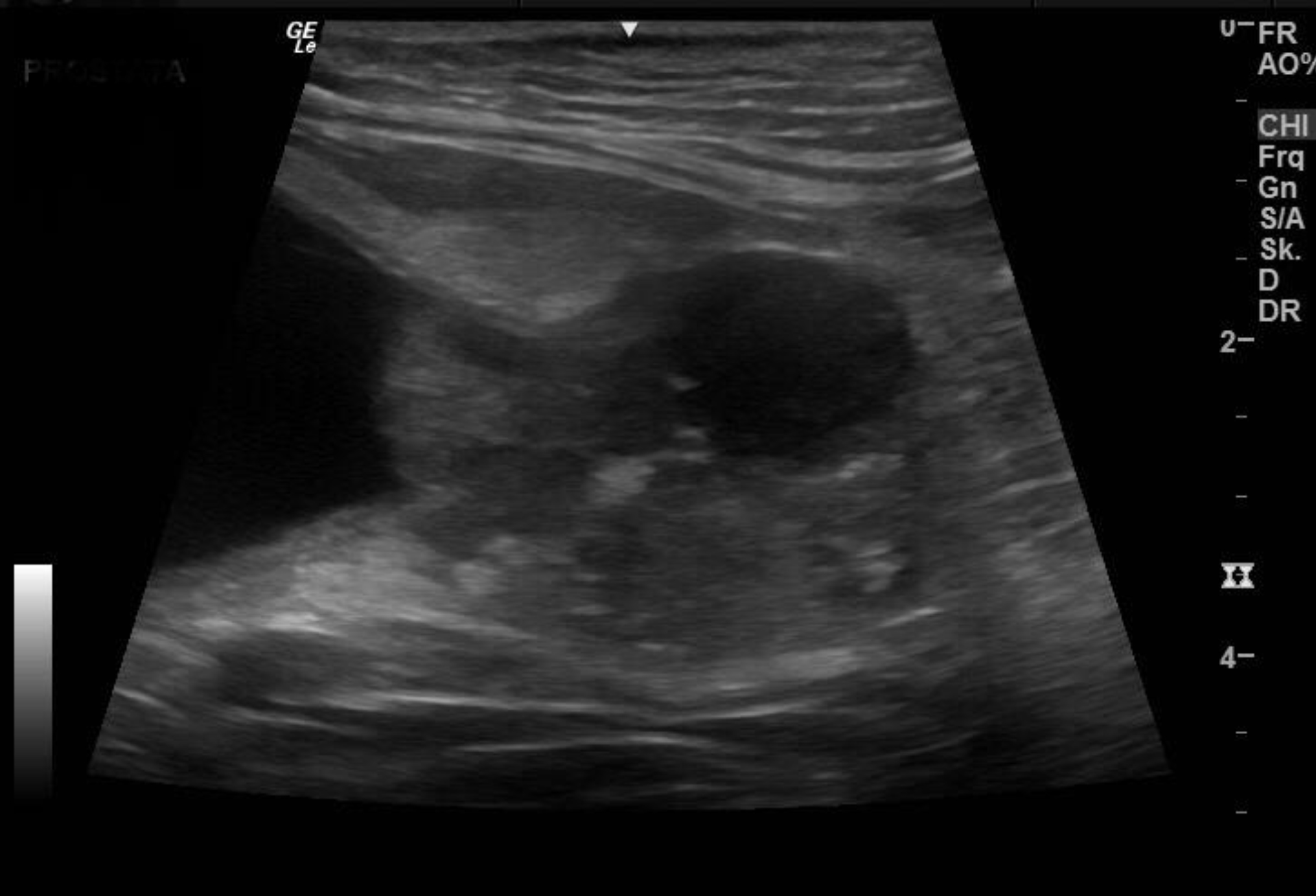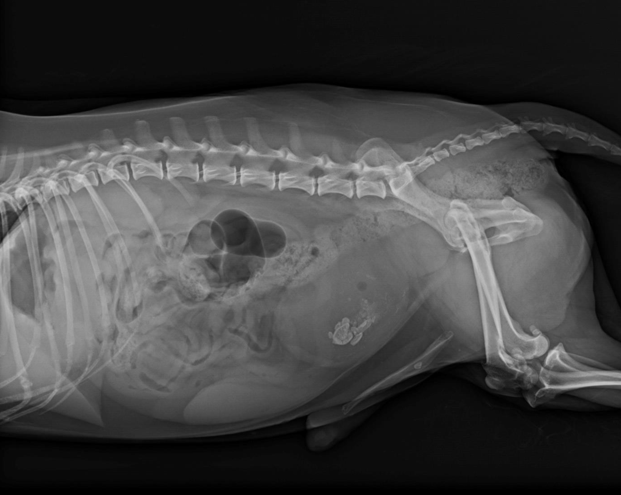 Ein anderer Fall ist der eines neun Jahre alten Kooikerrüden, der bereits mit Antibiotika anbehandelt war und wenig bis keinen Urin absetzen konnte. Der Rüde war seit zwei Jahren kastriert. Röntgenologisch zeigten sich eine stark gefüllte Harnblase und eine röntgendichte prominente Vorsteherdrüse (Prostata). Sonographisch stellte sich diese inhomogen, mit einer teilweisen Ansammlung von Calciumsalzen (kalzifiziert) dar. Im Bereich der Prostata schien eine blumenkohlartige Wucherung in der Harnröhre vorzuliegen, die den Urinabsatz blockierte.