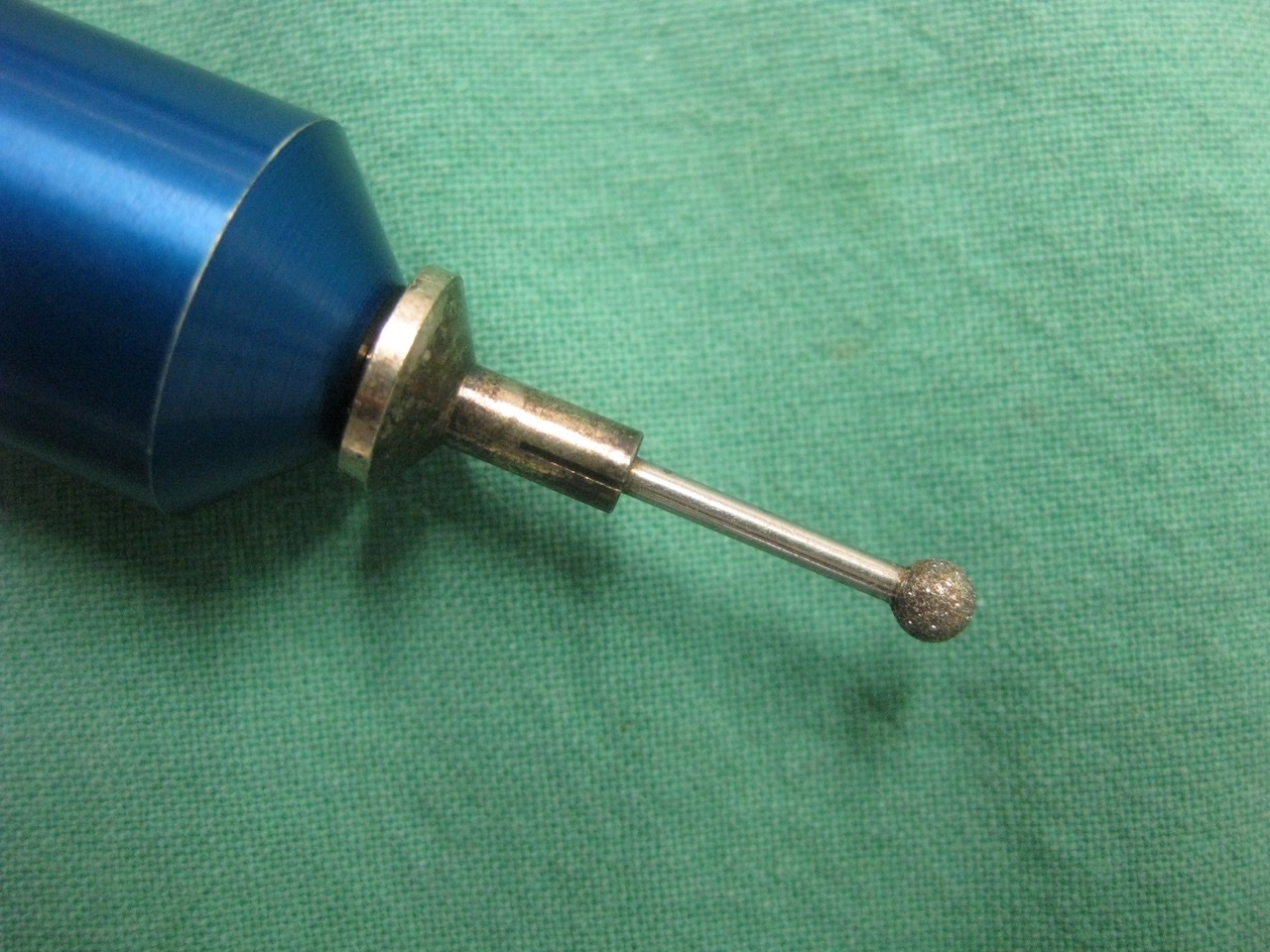 Nachdem die Diagnose nicht heilendes Hornhautulkus oder SCCED feststand, wurde Titus Auge folgendermaßen behandelt: Er bekam Tropfen in sein linkes Auge, die die Oberfläche betäuben, sodass dann mit Wattestäbchen die gesamte lose Zellschicht entfernt werden konnte. Danach erfolgte ein Aufrauen der darunter liegenden Schicht mit einer kleinen Diamantfräse (Bild 4). Titus Besitzerin war zunächst etwas erschrocken, als sie das Wort Fräse hörte. Dieses kleine Gerät arbeitet jedoch sehr leise und schonend, und Titus war ziemlich unbeeindruckt von der Prozedur. Nach dieser Hornhautbehandlung war der Defekt deutlich größer als zu Beginn der Untersuchung, was zeigte, dass die lose Zellschicht tatsächlich einen relativ großen Bereich der Hornhaut eingenommen hatte. Nun wurde Titus noch eine große weiche Kontaktlinse ins linke Auge eingesetzt (Bild 5). Diese korrigiert natürlich nicht die Fehlsichtigkeit, sondern führt durch den leichten Druck dazu, dass sich die Zellen besser verankern und somit den Defekt besser schließen können. Außerdem ist es für viele Hunde angenehmer, wenn sie in der Zeit bis zum Abheilen des Defektes eine Kontaktlinse im Auge haben. Damit Titus sich nicht mehr am Auge kratzen konnte - was die Heilung verzögern kann - wurde ihm außerdem ein Halskragen aufgesetzt. Er bekam 4x täglich Augentropfen, und die Besitzerin berichtete, dass er zwar am gleichen Tag das Auge viel zugehalten hatte, aber schon nach wenigen Tagen wieder deutlich munterer wurde, das linke Auge nicht mehr zukniff und, dass es auch nicht mehr tränte. Als Titus nach 12 Tagen zur Kontrolle kam, war der Hornhautdefekt abgeheilt. Die Kontaktlinse wurde entfernt, der Halskragen konnte weggelassen werden, und die Augentropfen mussten auch nicht mehr gegeben werden.