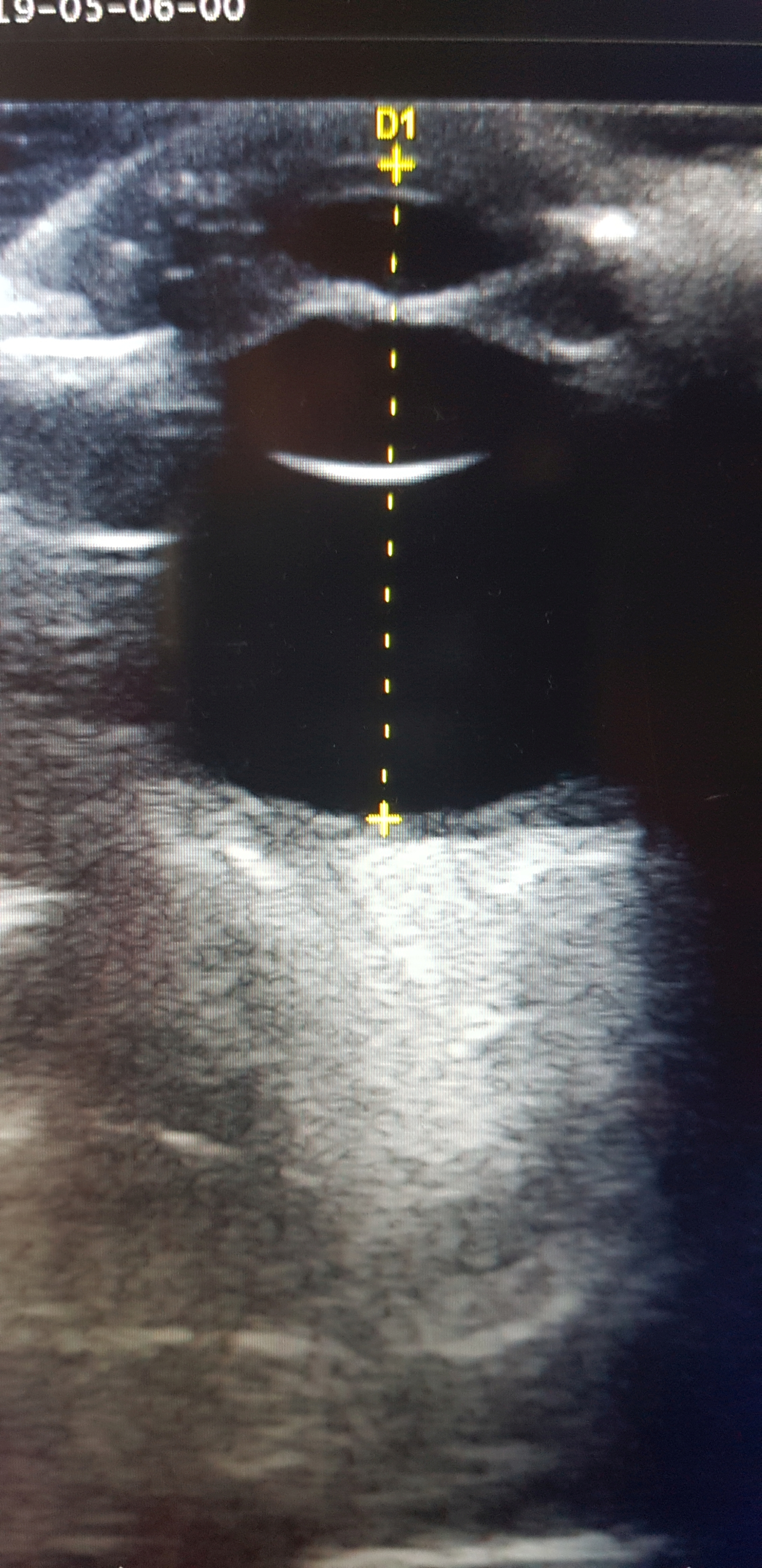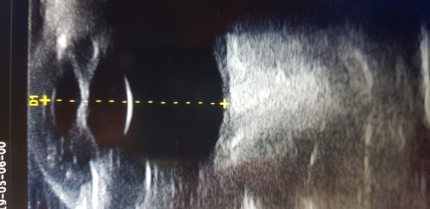 Da das rechte Auge mit der Untersuchungslampe nicht einsehbar war, wurde eine Ultraschalluntersuchung der Augen
