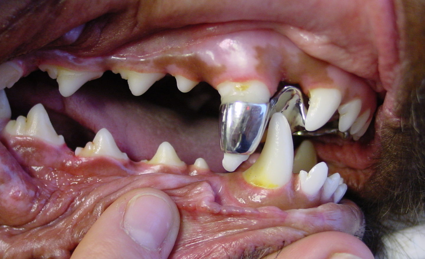 Eine kieferorthopädische Korrektur bei Hunden ist prinzipiell in jedem Alter möglich. Auch bei uns Menschen sieht man ja immer öfter Erwachsene mit Brackets und Spangen, bei denen eine kieferorthopädische Behandlung durchgeführt wird. Bei der Wahl der Korrektur ist - wie im vorliegenden Beispiel - die richtige Therapieform zu wählen, wobei die längere Behandlungszeit berücksichtigt werden muss.