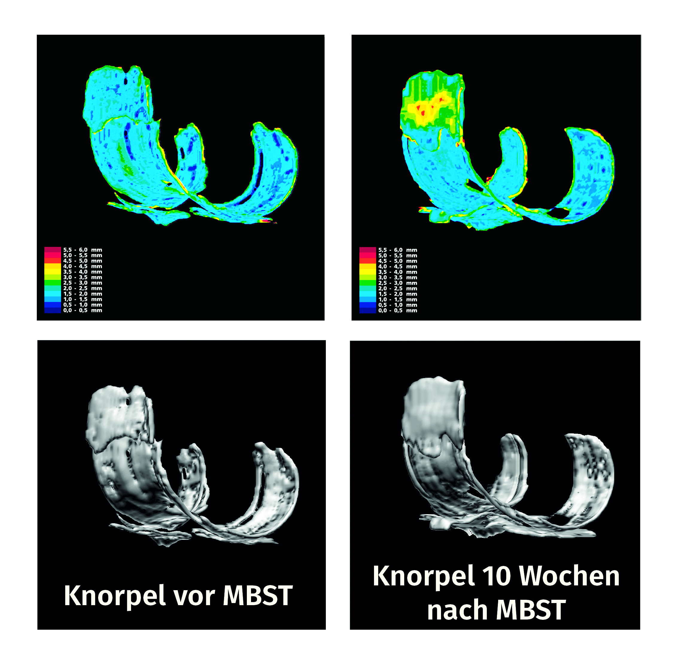 Die Ergebnisse einer Studie mit über 4.500 Humanpatienten zeigen, dass die Anwendung der Kernspin-Resonanz-Therapie zu einer deutlichen Schmerzlinderung führt. Ebenso wurde erwiesen, dass die Bewegungsfähigkeit nach der Behandlung deutlich verbessert ist [1]. In einer Untersuchung zur Langzeitwirkung der Therapie bei Gonarthrose-Patienten wurde noch bis zu vier Jahre nach der Behandlung eine anhaltende Schmerzlinderung festgestellt [2]. Eine Zellstudie zeigte, dass sich nach der Anwendung der Kernspin-Resonanz-Therapie die Zellteilungsrate in menschlichen Knorpel- und Knochenzellen im Vergleich zum Placebo erhöhte [3]. Welche Effekte die Therapie bei Osteoporose hat, wurde in einer weiteren Studie untersucht. Dabei wurden nach der Therapie ein erhöhter Knochenmineralisationsgehalt sowie eine deutliche Verringerung der Beschwerden festgestellt [4]. Es gibt aktuell rund 150 Studien und Fachveröffentlichungen, welche die MBST-Therapie belegen.