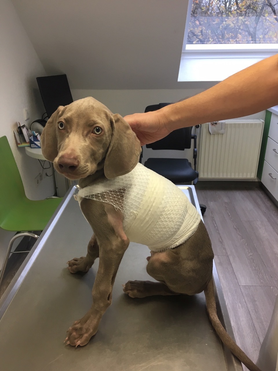Dahinter verbirgt sich die hypertrophe Osteodystrophie. Es handelt sich um eine Wachstumsstörung, die bei Welpen großwüchsiger Rassen zwischen dem 2.-7. Lebensmonat auftritt und wie bei Elliot mit Fieber, Anämie, Veränderungen im weißen Blutbild und Schmerzen in Erscheinung tritt. Die HOD wurde schon vor einigen Jahrzehnten beim Hund erstmalig beschrieben. Man vermutete immer einen Mangel in der Ernährung, insbesondere einen Vitamin C-Mangel und Fehler im Proteingehalt des Futters. Mittlerweile gibt es aber einige Berichte, Publikationen und eine Studie zum Weimaraner, die einen zeitlichen Zusammenhang mit der Impfung nahelegen. Der genaue Auslöser der Erkrankung ist aber immer noch unbekannt. Man vermutet eine genetische Veranlagung (Disposition) gegenüber modifizierten Lebendimpfstoffen, die zu einer Immunreaktion an den Knorpelzellen der Wachstumsfugen führt.