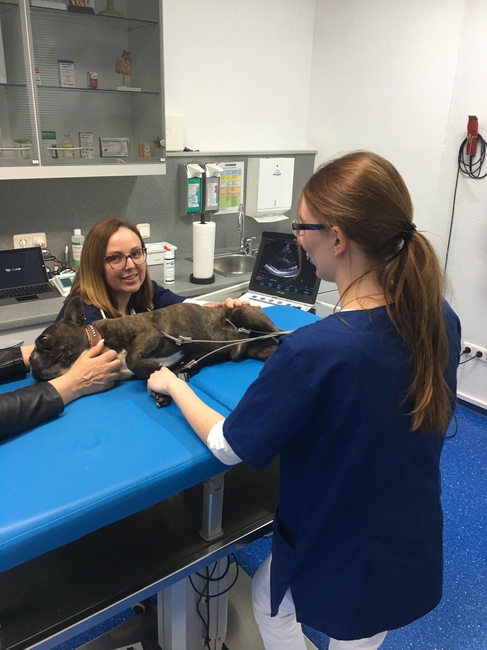 Im November 2014 wurde der Welpe Gonzo (Französische Bulldogge, männlich, 6 kg Körpergewicht) erstmals in meiner Herzsprechstunde des Tierärztlichen Fachzentrum Bayreuth vorgestellt. Vorberichtlich wurde im Rahmen der Erstimpfung, die leider wie so oft nicht beim Züchter erfolgte, von der Haustierärztin ein sehr lautes Herzgeräusch festgestellt. Gonzos Verhalten war unauffällig - Symptome wie Husten, Würgen, Blaufärbung der Schleimhäute oder Ohnmachtsanfälle, die mit einer Herzerkrankung einhergehen könnten, wurden nicht beobachtet.