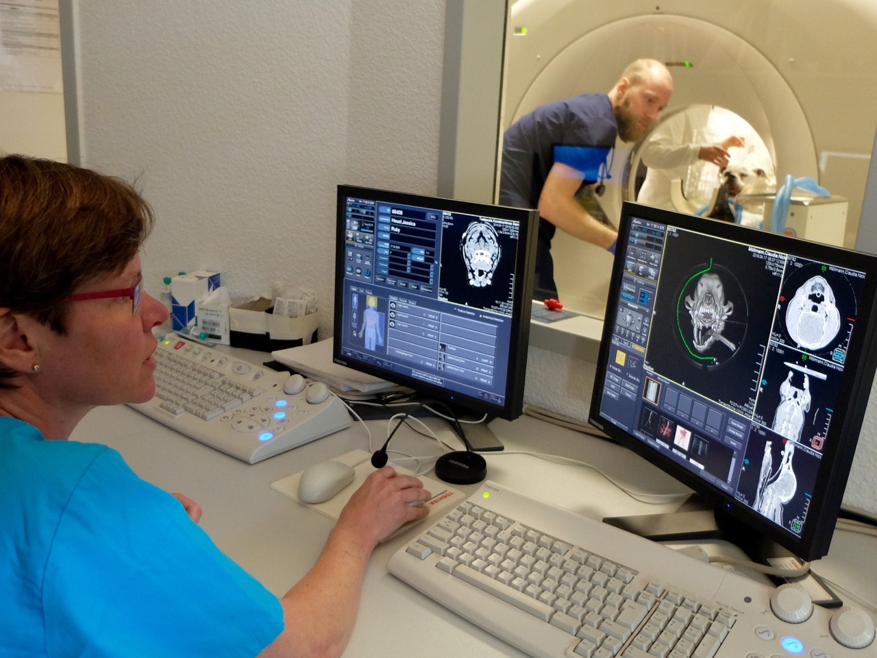 Im Bereich der Hintergliedmaße gelten die Hüftgelenkdysplasie (HD) als Disposition und der Kreuzbandriss als traumatische Erkrankung der Diensthunderassen. Eine Hüftgelenkdysplasie (Dysplasie = Fehlbildung) ist eine angeborene Formstörung des Hüftgelenks. Genau genommen handelt es sich um eine angeborene Reifungsstörung der Hüftpfanne. Möglich ist, dass der Hüftgelenkkopf oder die Hüftgelenkspfanne nicht passend ausgeformt sind und damit der Gelenkkopf keinen stabilen Halt in der Gelenkpfanne findet. Dies kann zu einer Hüftluxation führen. Weiterhin führt die permanente Fehlbelastung des Gelenks zu einem erhöhten Abrieb des Knorpels und somit häufig zu einer Arthrose.