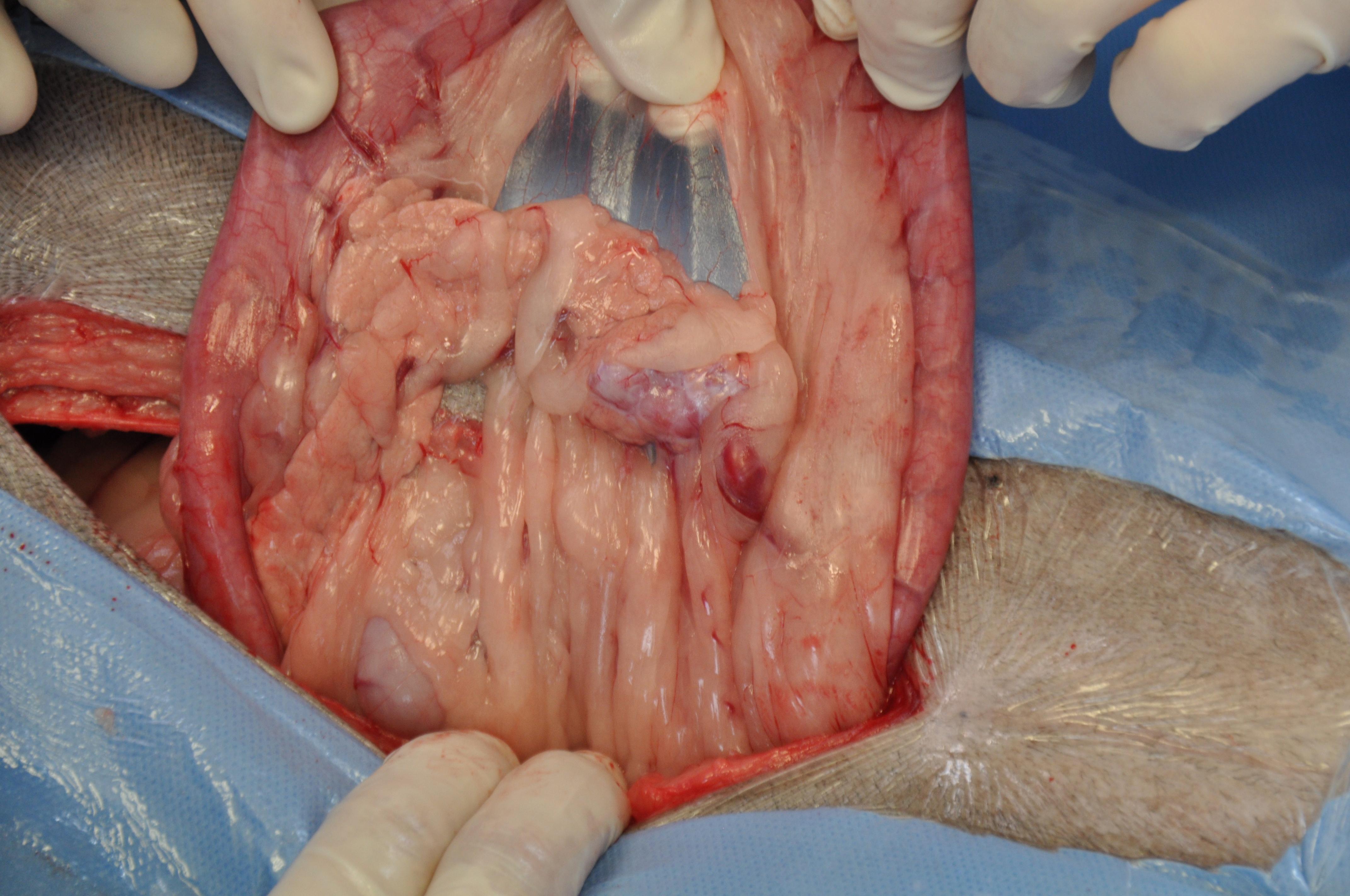 Grundsätzlich bestehen zwei mögliche Optionen der Behandlung eines Hundes mit einem Insulinom. Die Langzeitaussichten und Überlebenszeiten nach einer erfolgreichen chirurgischen Entfernung des Insulinoms sind deutlich besser als unter einer rein medikamentösen Therapie. So können Hunde nach einer erfolgreichen Operation in Kombination mit Medikamenten bis zu dreieinhalb Jahre lang überleben. Voraussetzung für eine Operation ist allerdings die Darstellung eines einzelnen Tumors im Ultraschall oder in der Computertomographie. Sollte das Insulinom gestreut haben, ist eine Operation nicht sinnvoll. Im Besitzergespräch stellte sich recht rasch heraus, dass eine chirurgische Behandlung, wenn möglich und sinnvoll, gewünscht war. Folglich musste mit größtmöglicher Sicherheit ausgeschlossen werden, dass sich bereits Metastasen gebildet hatten.