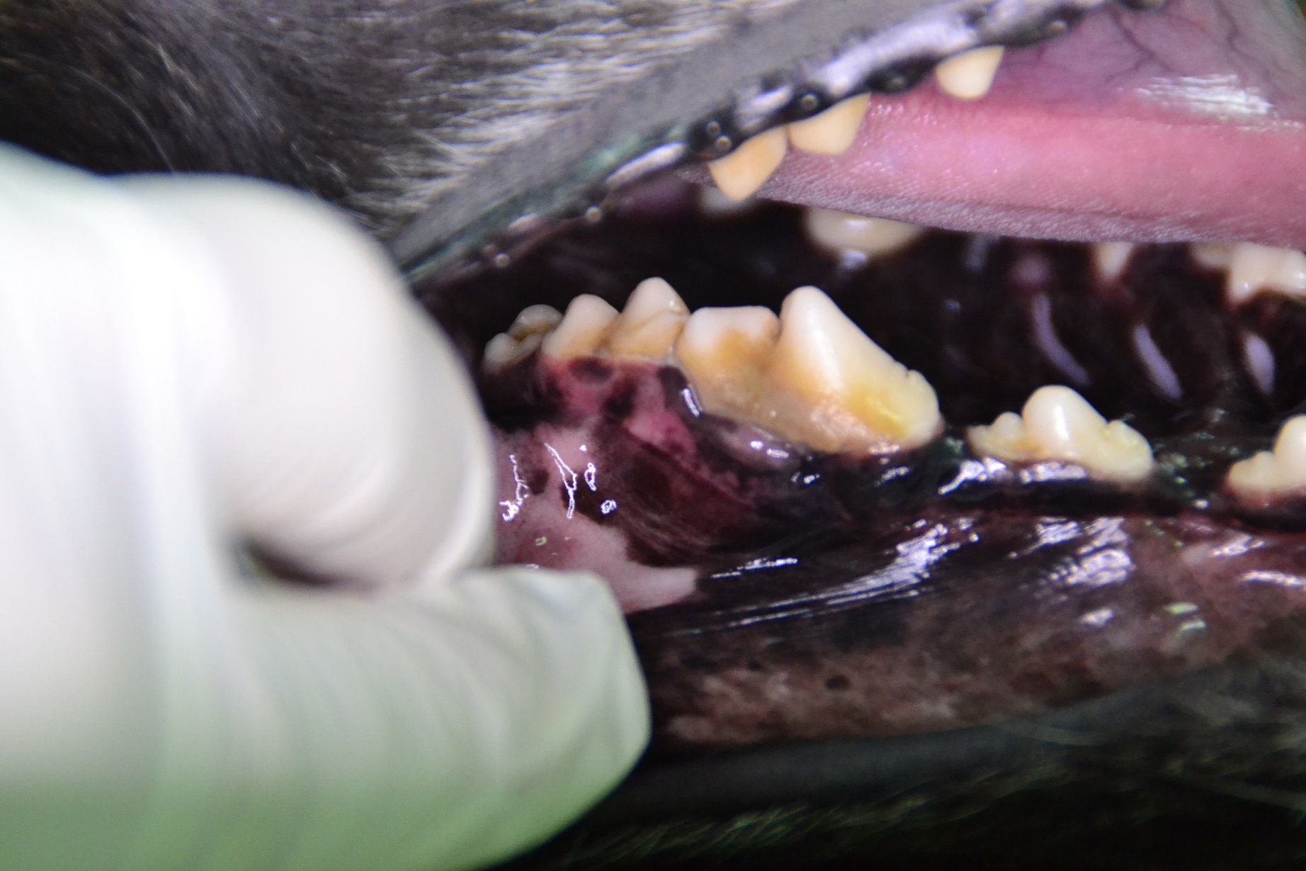 Patient: Belgischer Schäferhund „Alyza“, 6 Jahre alt, 22,7 kg, weiblich, kastriert. Sie wurde Anfang April wegen einer Otitis und einer allgemeinen „Wesensveränderung“ vorgestellt. Dem Besitzer war zudem ein unangenehmer Mundgeruch aufgefallen.