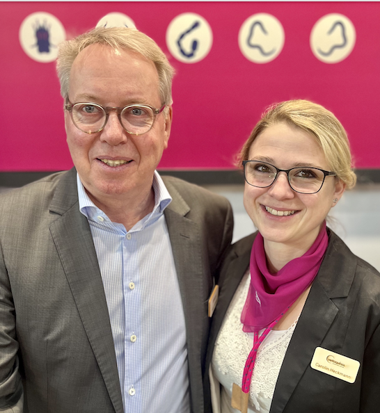 Digitaler Entdecker: In Bad Bentheim führt Dr. Björn Becker - hier im Bild mit Julia von Gablenz, Senior Vice President von Zoetis DACH & Frankreich) seine Kleintierpraxis und ist zudem als Dozent an der TiHo Hannover und Referent an der Hochschule Neu-Ulm tätig. Er sieht sich als digitaler Entdecker und hat es sich zur Aufgabe gemacht, innovative Entwicklungen in der Tiergesundheit zu erkunden. Die Neuentwicklungen, die auf dem LTK2024 präsentiert wurden, finden Platz in den kommenden Ausgaben der beiden Fachmagazine KATZENMEDIZIN & HUNDERUNDEN. www.Just4Vets.online