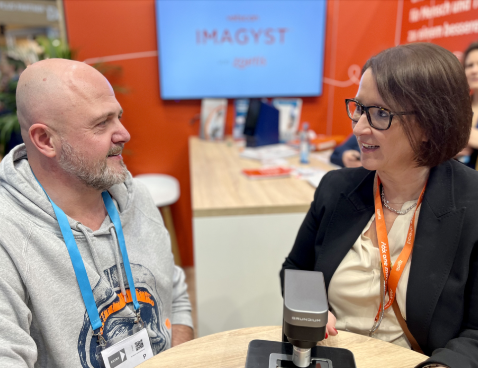 Aug' in Aug'! Am Stand von CP-Pharma trafen sich erstmals Unternehmenschef Jens-Uwe Martsekis und Dr. Theresa Eulitz, die gemeinsam mit Doreen Meyer das Fachzentrum für Kleintiermedizin in Chemnitz