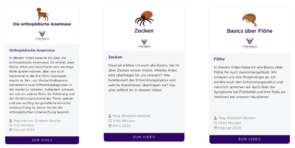 Außerdem möchte ich euch die Rubrik „Parasiten“ vorstellen: Ihr findet sie auf der Webseite unter „Basics“. Dort habe ich für euch ein Video über Zecken und alles, was ihr über diese kleinen Biester wissen müsst. Welche Arten sind überhaupt für uns relevant? Wie funktioniert der Entwicklungszyklus und welche Krankheiten überträgt welche Zecke? Vielen Dank an Elanco, dass sie dieses Video und die Academy unterstützen.