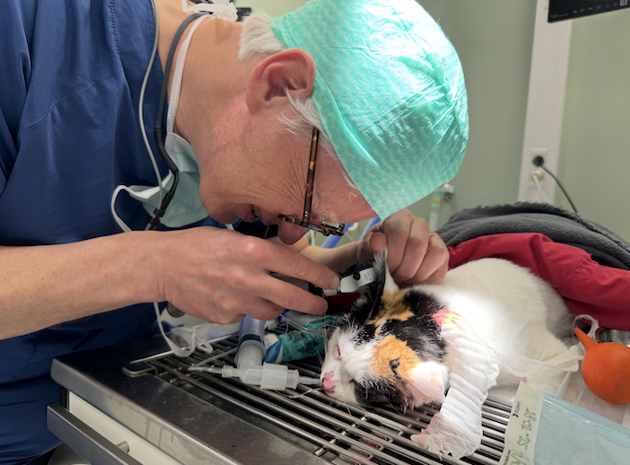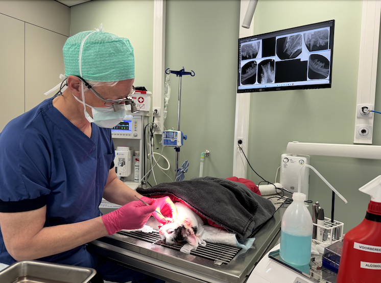 Der 55-Jährige, der lange Jahre eine Praxis im Zentrum von Amsterdam geleitet hat und seit Juli 2022 Teil der Evidensia-Familie ist, fühlt sich in seinem Dental-OP sichtlich zu Hause. Während er eine Katze behandelt, erklärt er, dass Evidensia die Anschaffung von neuen diagnostischen Gerätschaften genehmigt, wenn es veterinärmedizinisch Sinn macht. "Dabei ist natürlich klar, dass sich die Investitionen auch in steigenden Fallraten und Umsätzen widerspiegeln", erklärt Lamberts.
