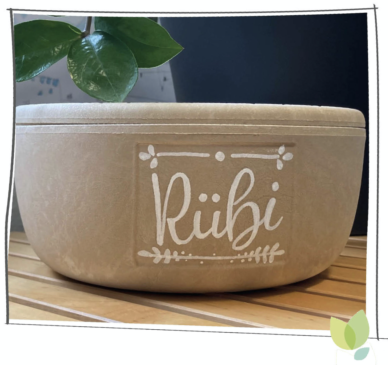 Um die Tierurne ganz persönlich zu gestalten, bietet Animal Tree als zusätzlichen Service die individuelle Beschriftung durch eine Künstlerin des Teams an. Dafür wird lediglich der Name des Tieres benötigt.