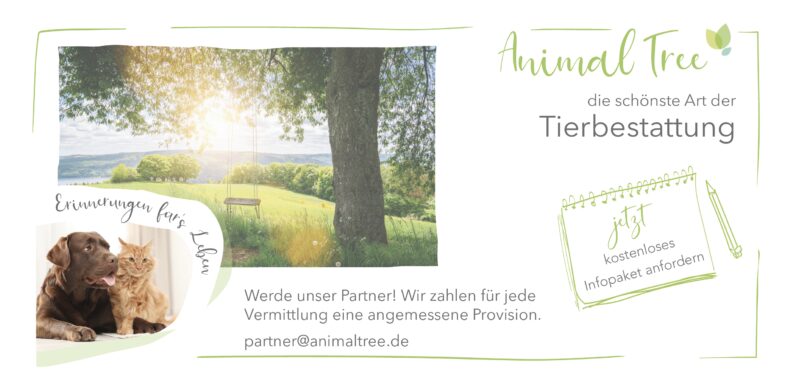 Animal Tree ist ein junges Team, das Tierbestattungen mit Bäumen der Erinnerung als Komplett-Paket anbietet. Ein Anruf oder eine schnelle Online-Beauftragung genügt und das verstorbene Tier wird ganz unkompliziert und schnell beim Tierarzt oder beim Tierhalter zu Hause abgeholt. Nach der Einzelkremierung erhalten die Tierbesitzer:innen die Asche ihrer Lieblinge in einer biologisch abbaubaren Tierurne liebevoll verpackt zurück. Die Tierbestattung erfolgt generell als Einzelkremierung. Auch Tierbestattungen ohne Baum können bei Animal Tree beauftragt werden.