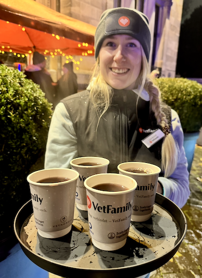 Diejenigen, die sich für eine Teilnahme in Wiesbaden entschieden haben, waren mehr als zufrieden, was sicherlich auch an den vielen, kleinen Aktionen rund um den Kongress lag. Als gute Idee erwies sich die Glühwein-Aktion von VetFamily. Das Team um Tom Chabin servierte den Besucher:innen des Get Togethers im Kurhaus das heiße Weihnachtsgetränk mit und auch ohne Alkohol. Apropos Kurhaus: Das Get Together erwies sich als echtes Highlight. Das prachtvolle Wiesbadener Kurhaus bot den Tierärzt:innen eine Kulisse, wie man sie selten erlebt: festlich, mondän und perfekt für einen Abend, der in Erinnerung bleibt. Nach dem Dinner gab es eine Premiere – ein einstündiges Live-Konzert zusätzlich zum DJ. Die Rodgau Monotones lieferten kernige Musik mit unverkennbarem hessischen Lokalkolorit. Nicht jede:r konnte mit dem Kultklassiker der 80er, „Erbarmen, zu spät, die Hesse komme“, etwas anfangen – Gesprächsstoff war damit garantiert. Getanzt und gefeiert wurde trotzdem (oder gerade deswegen) bis zwei Uhr morgens.