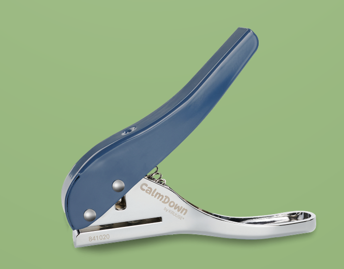 Alle zukünftigen Halskragen, die von KRUUSE hergestellt werden, werden vorgestanzte Löcher haben. Für Halskragen ohne vorgestanzte Löcher wurde ein Spezialwerkzeug entwickelt: der CalmDown by KRUUSE® Lochstanzer.