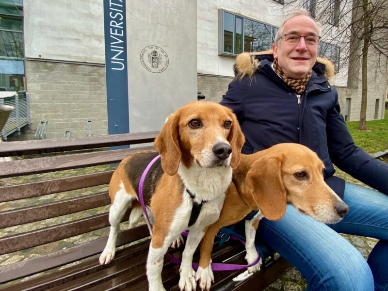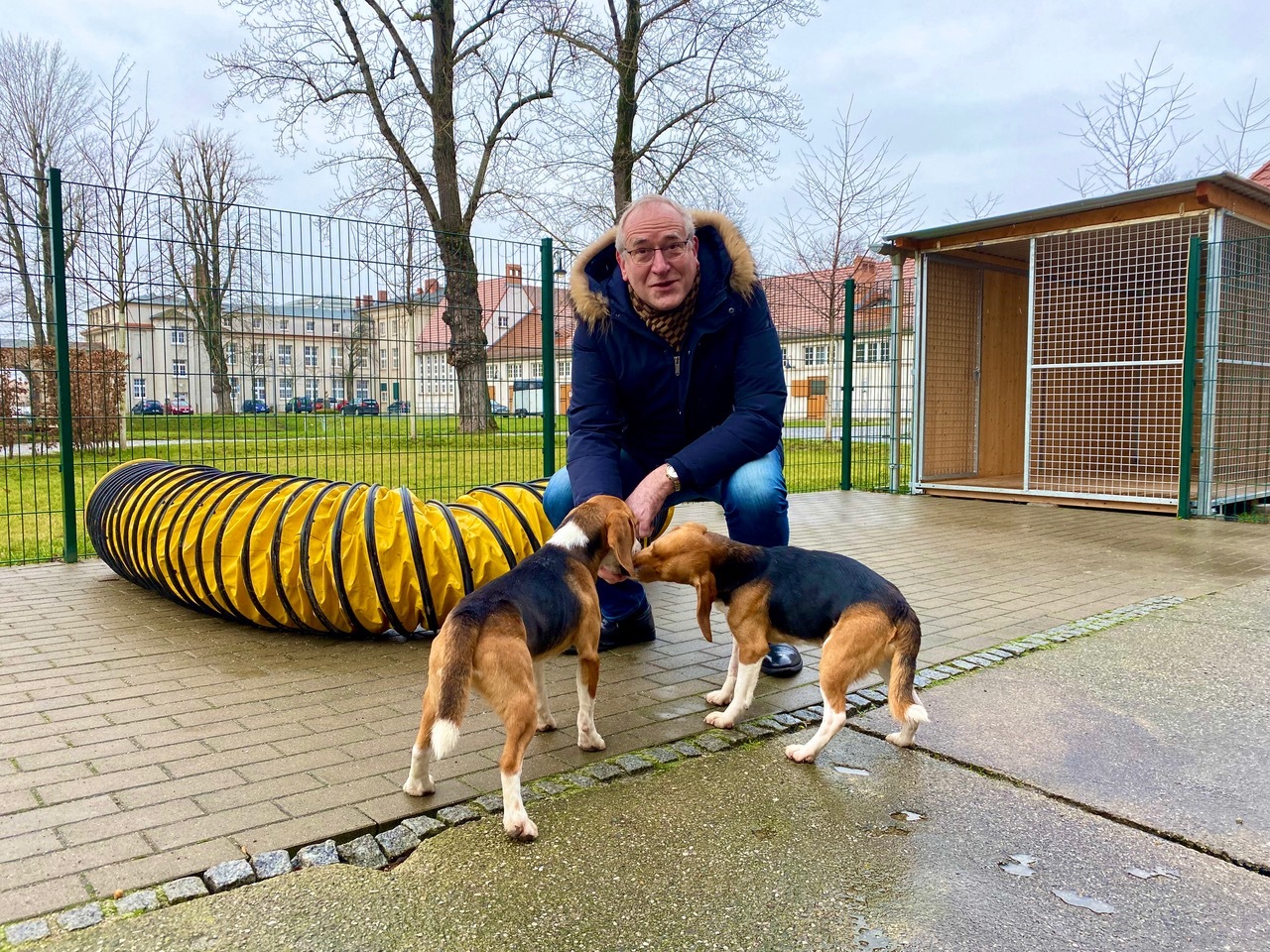 Die beiden Beagle haben die Runde über den Leipziger Campus sehr genossen und zum Abschluss noch ein Leckerlie von Prof. Seeger bekommen. Wer die Möglichkeit hat, sich auf dem Gelände der Veterinärmedizinischen Fakultät einmal umschauen zu können, sollte diese Chance auf jeden Fall wahrnehmen - mit oder ohne Hund.
