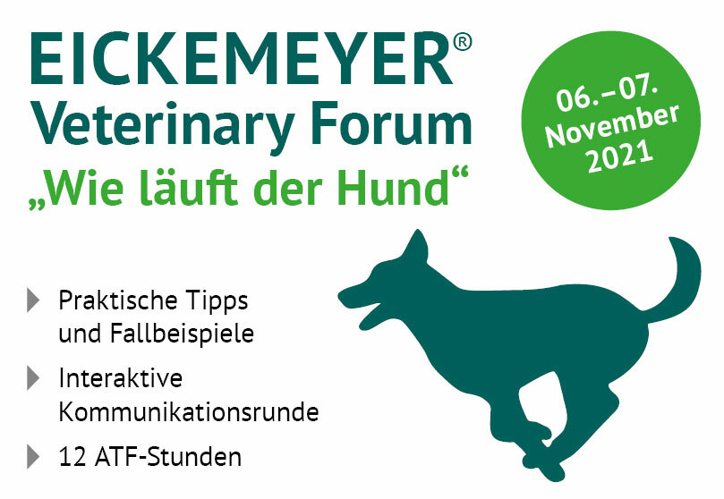 Am 6 und 7. November 2021 findet in Tuttlingen das 4. EICKEMEYER Veterinary Forum mit den beiden Referenten, Prof. Dr. Martin Fischer und Dr. Daniel Koch zum Thema „Wie läuft der Hund?“ statt."