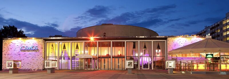Veranstaltungsort ist das KOSMOS in der Karl-Marx-Allee 131, das 1961 als Prestigeprojekt der DDR eröffnet wurde und das damals als das modernste Filmtheater des Landes galt."